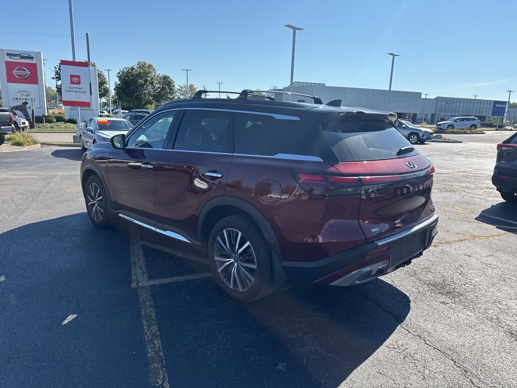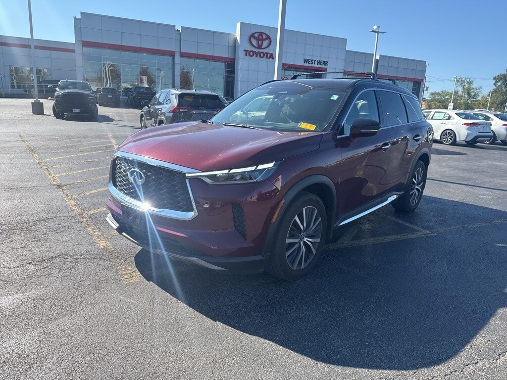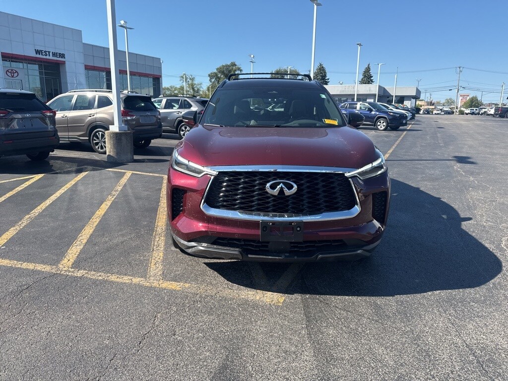 2023 INFINITI QX60 Autograph Deep Bordeaux/Black Obsidian 17 Speakers, 3rd row seats: bench, 4-Wheel Disc Brakes, Air Conditioning, Auto High-beam Headlights, Auto-dimming door mirrors, Auto-dimming Rear-View mirror, Bose Performance Series 17-Speaker Sound System, Bumpers: body-color, Cargo Package, Climate-Controlled Front Bucket Seats, Dual front impact airbags, Dual front side impact airbags, First Aid Kit, Floor Mats on Captains Chair w/3rd Row Tray, Four wheel independent suspension, Front Bucket Seats, Front Center Armrest, Front dual zone A/C, Fully automatic headlights, Garage door transmitter: HomeLink, Heated front seats, Heated rear seats, Heated steering wheel, Illuminated Kick Plate, INFINITI USB Charging Cable Set, Knee airbag, Leather steering wheel, Memory seat, Occupant sensing airbag, Outside temperature display, Overhead airbag, Overhead console, Passenger vanity mirror, Power door mirrors, Power Liftgate, Power moonroof, Power passenger seat, Power steering, Radio: AM/FM Audio System, Rear air conditioning, Rear side impact airbag, Reclining 3rd row seat, Remote keyless entry, Security system, Semi Aniline Leather Seating Surfaces, Splash Guards, Split folding rear seat, Spoiler, Steering wheel mounted audio controls, Tachometer, Telescoping steering wheel, Tilt steering wheel, Traction control, Trip computer, Turn signal indicator mirrors, Ventilated front seats.