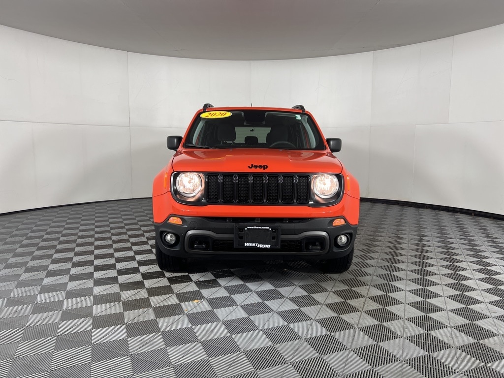 2020 Jeep Renegade Sport Omaha Orange Clearcoat CARFAX One-Owner. Clean CARFAX. 2 Front Tow Hooks, 4-Wheel Disc Brakes, ABS brakes, All-Season Floor Mats, Black Side Roof Rails, Body Color Door Handles, Cloth Low-Back Bucket Seats, Cornering Front Fog Lamps, Deep Tint Sunscreen Glass, Dual front impact airbags, Dual front side impact airbags, Electronic Stability Control, Four wheel independent suspension, Front Bucket Seats, Front Center Armrest, Keyless Entry w/Panic Alarm, Knee airbag, Occupant sensing airbag, Overhead airbag, ParkView Rear Back-Up Camera, Quick Order Package 2XN Upland Edition, Radio: Uconnect 3 w/5" Display, Remote keyless entry, Remote Start System, Split folding rear seat, Steering wheel mounted audio controls, Tachometer, Tangerine Interior Accents, Upland Edition, Voltmeter, Wheels: 17" x 6.5" Aluminum (WFE).