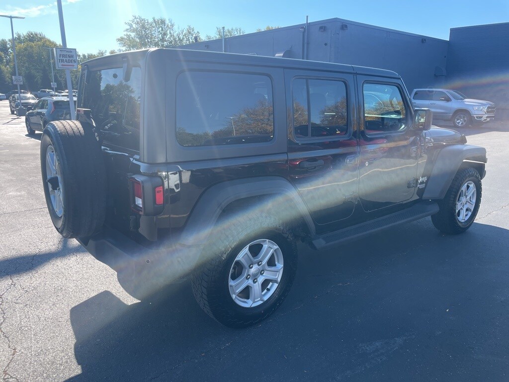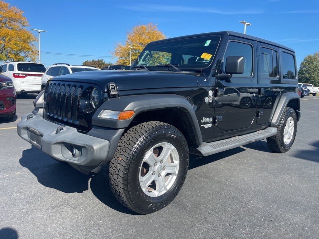 2020 Jeep Wrangler Unlimited Sport S Black Clearcoat CARFAX One-Owner. 4-Wheel Disc Brakes, ABS brakes, Automatic Headlamps, Cold Weather Group, Convenience Group, Deep Tint Sunscreen Windows, Dual front impact airbags, Dual front side impact airbags, Electronic Stability Control, Front 1-Touch Down Power Windows, Front LED Fog Lamps, Heated Front Seats, Heated Steering Wheel, Leather Wrapped Steering Wheel, LED Headlamp & Fog Lamp Group, LED Reflector Headlamps, Occupant sensing airbag, ParkView Rear Back-Up Camera, Power Heated Mirrors, Quick Order Package 22S Sport S, Radio: Uconnect 3 w/5" Display, Remote Keyless Entry, Security Alarm, Speed Sensitive Power Locks, Steering wheel mounted audio controls, Sun Visors w/Illuminated Vanity Mirrors, Universal Garage Door Opener, Wheels: 17" x 7.5" Tech Silver Aluminum.