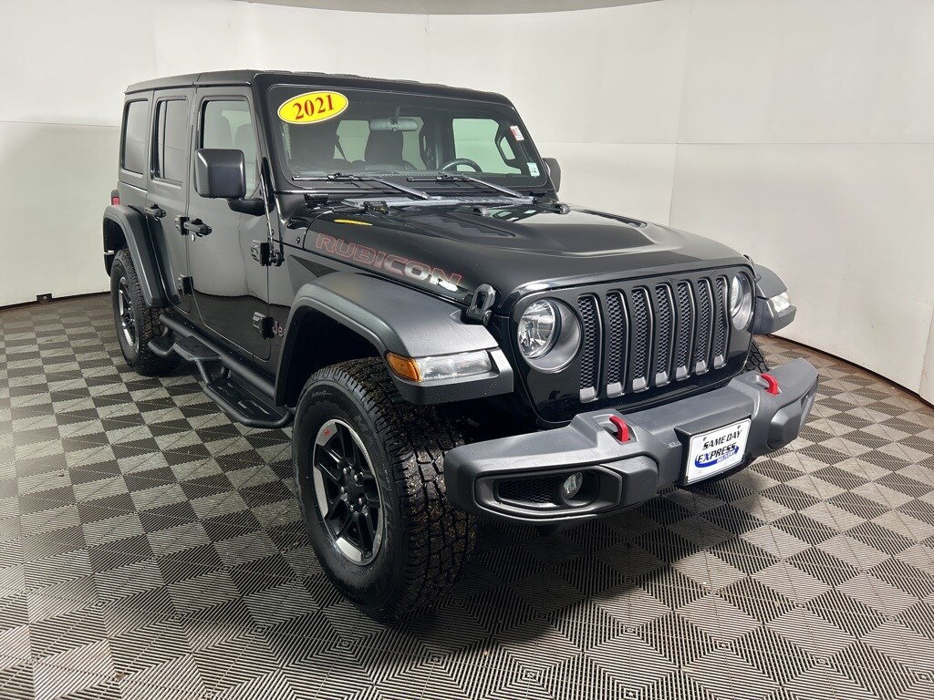 2021 Jeep Wrangler Unlimited Rubicon Black Clearcoat Alloy wheels, Cold Weather Group, Heated Front Seats, Heated Steering Wheel, Leather Trimmed Bucket Seats, Leather Wrapped Park Brake Handle, Leather Wrapped Shift Knob, MOPAR Hardtop Headliner, Premium Door Trim Panel, Quick Order Package 25R, Remote keyless entry, Remote Proximity Keyless Entry, Remote Start System, Wheels: 17" x 7.5" Machined w/Black Pockets.