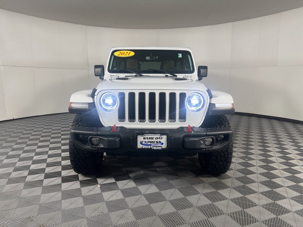 2021 Jeep Wrangler Unlimited Rubicon Bright White Clearcoat CARFAX One-Owner. Clean CARFAX. 1-Year SiriusXM Guardian Trial, 240 Amp Alternator, 4-Wheel Disc Brakes, 4G LTE Wi-Fi Hot Spot, 5-Year SiriusXM Traffic Service, 5-Year SiriusXM Travel Link Service, 7 & 4 Pin Wiring Harness, 700 Amp Maintenance Free Battery, 8.4" Radio & Premium Audio Group, 8.4" Touchscreen Display, ABS brakes, Alpine Premium Audio System, Apple CarPlay/Android Auto, Auto-Dimming Rear-View Mirror, Auxiliary Switches, Black 3-Piece Hard Top, Blind Spot & Cross Path Detection, Cargo Compartment Floor Mat, Class II Receiver Hitch, Cold Weather Group, Daytime Running Lamps LED Accents, Dual front impact airbags, Dual front side impact airbags, Dual Top Group, Emergency/Assistance Call, For Details, Visit DriveUconnect.com, Freedom Panel Storage Bag, Front Bucket Seats, Front LED Fog Lamps, GPS Navigation, HD Radio, Heated Front Seats, Heated Steering Wheel, LED Lighting Group, LED Premium Reflector Headlamps, LED Taillamps, No Soft Top, Occupant sensing airbag, Off-Road Info Pages, ParkSense Rear Park Assist System, Performance Suspension, Premium Black Sunrider Soft Top w/Dual Top Group, Premium Cloth Low-Back Bucket Seats, Quick Order Package 25R, Radio: Uconnect 4C Nav w/8.4" Display, Rear Window Defroster, Rear Window Wiper/Washer, Remote keyless entry, Remote Proximity Keyless Entry, Safety Group, SiriusXM Traffic Plus, SiriusXM Travel Link, Split folding rear seat, Steel Bumper Group, Steel Front Bumper, Steel Rear Bumper, Steering wheel mounted audio controls, Tachometer, Trail Rail Management System, Trailer Tow & HD Electrical Group, Voltmeter.