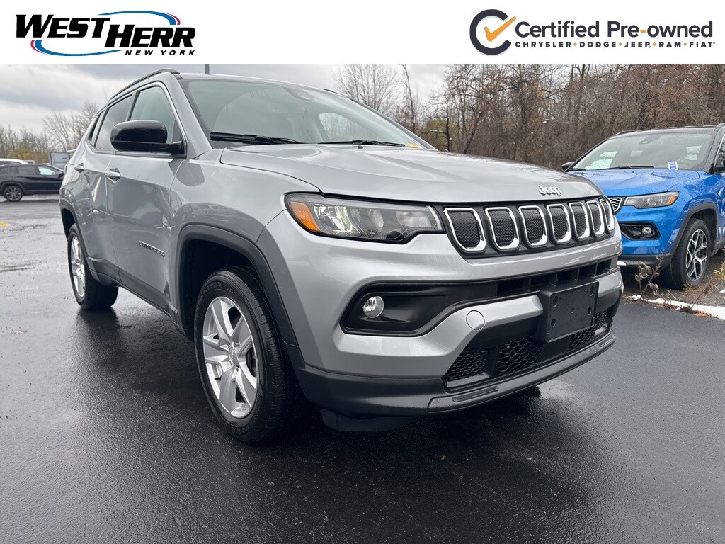 Certified. 2022 Jeep Compass Latitude Billet Silver Metallic Clearcoat Clean CARFAX. CARFAX One-Owner. 4WD, 115V Auxiliary Power Outlet, 2nd Row USB Type A/C Charge Only, Air Conditioning ATC w/Dual Zone Control, All-Season Floor Mats, Auto-Dimming Rear-View Mirror, Convenience Group, Foot Activated Open 'N Go Liftgate, Heated Front Seats, Heated Steering Wheel, Humidity Sensor, Leather Wrapped Steering Wheel, Power Adjust 8-Way Driver Seat, Power Liftgate, Quick Order Package 2GJ, Remote Start System, Reversible Carpet/Vinyl Cargo Mat, Security Alarm, Universal Garage Door Opener, Vehicle Information Center, Windshield Wiper De-Icer.