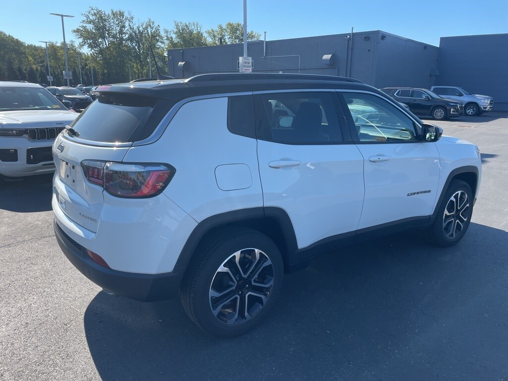 2022 Jeep Compass Limited Bright White Clearcoat CARFAX One-Owner. Clean CARFAX. 4-Wheel Disc Brakes, ABS brakes, Dual front impact airbags, Dual front side impact airbags, Electronic Stability Control, Front Bucket Seats, Heated front seats, Heated steering wheel, Knee airbag, Leather Trimmed Bucket Seats, Occupant sensing airbag, Overhead airbag, ParkView Rear Back-Up Camera, Power driver seat, Quick Order Package 2GG, Remote keyless entry, Split folding rear seat, Steering wheel mounted audio controls, Tachometer, Trip computer.