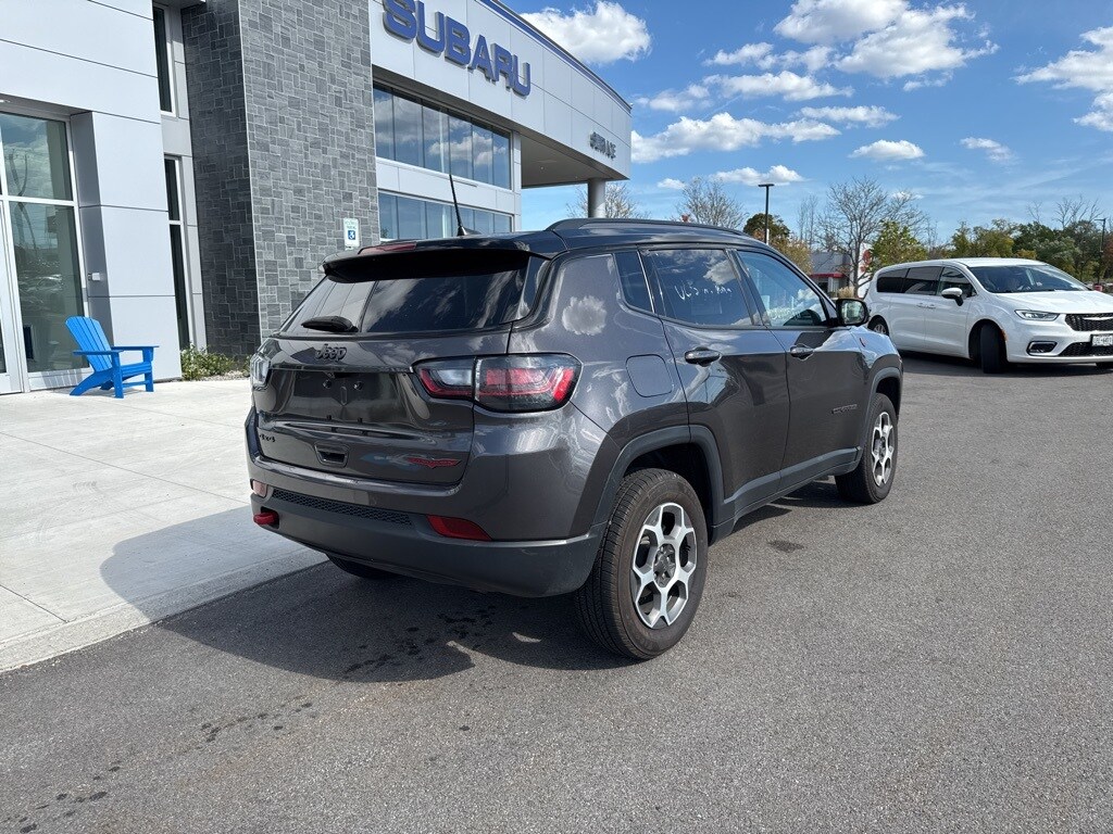 Granite Crystal Metallic Clearcoat 2022 Jeep Compass Trailhawk 4WD 9-Speed 948TE Automatic 2.4L I4 Compass Trailhawk, 4D Sport Utility, 2.4L I4, 9-Speed 948TE Automatic, 4WD, Granite Crystal Metallic Clearcoat, Ruby Red/Black w/Premium Cloth/Leather Trim Bucket Seats or Premium Leather Trimmed Bucket Seats, 10.1" Touchscreen Display, 115V Auxiliary Power Outlet, 2nd Row Heated Seats, 2nd Row USB Type A/C Charge Only, 360 Surround View Camera System, 4-Wheel Disc Brakes, 4G LTE Wi-Fi Hot Spot, Alexa Built-In, Auto High-beam Headlights, Cluster 10.25" TFT Color Display, Connected Travel & Traffic Services, Disassociated Touchscreen Display, Driver Assist Group I, Driver Seat Memory, Foot Activated Open 'N Go Liftgate, For Details, Visit DriveUconnect.com, For More Info, Call 800-643-2112, Global Telematics Box Module (TBM), GPS Navigation, HD Radio, Heated door mirrors, Heated Front Seats, Highway Assist System, Illuminated entry, Integrated Voice Command w/Bluetooth, Leather Wrapped Steering Wheel, LED Low/Highbeam Projector Headlamps, No Satellite Coverage HI/AK/PR/VI/GU, P&P Park & Unpark Assist System, ParkSense Fr/Rr Park Assist System, ParkView Rear Back-Up Camera, Power 8-Way Adjust Front Passenger Seat, Power Adjust 8-Way Driver Seat, Power Liftgate, Premium Cloth/Leather Trim Bucket Seats, Premium Leather Trimmed Bucket Seats, Premium LED Fog Lamps, Premium Taillamps, Quick Order Package 2GE, Radio: Uconnect 5 Nav w/10.1" Display, Remote keyless entry, Remote Start System, Reversible Carpet/Vinyl Cargo Mat, SiriusXM Guardian - Included Trial (B), SiriusXM Radio Service, SiriusXM Satellite Radio, SiriusXM w/360L, Traffic Sign Recognition, Trailhawk Elite Group, Universal Garage Door Opener, Vehicle Information Center, Ventilated Front Seats, Wheels: 17" x 6.5" Painted Diamond Cut Aluminum, Windshield Wiper De-Icer, Wireless Charging Pad.
