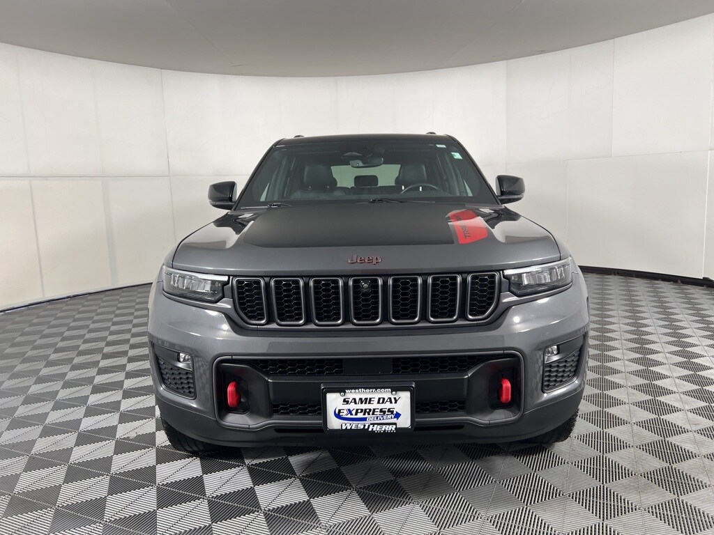 2022 Jeep Grand Cherokee Trailhawk Baltic Gray Metallic Clearcoat Clean CARFAX. 4-Wheel Disc Brakes, ABS brakes, Apple CarPlay, Dual front impact airbags, Dual front side impact airbags, Electronic Stability Control, Front Bucket Seats, Heated front seats, Heated rear seats, Heated steering wheel, Knee airbag, Memory seat, Navigation System, Occupant sensing airbag, Power driver seat, Power Liftgate, Power passenger seat, Quick Order Package 22J, Radio: Uconnect 5 Nav w/8.4" Display, Remote keyless entry, Split folding rear seat, Steering wheel mounted audio controls, Tachometer, Trip computer, Ventilated front seats, Voltmeter.