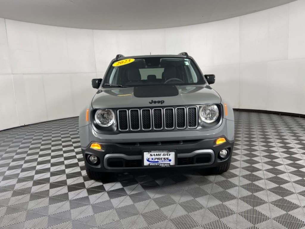 2023 Jeep Renegade Latitude Sting-Gray Clearcoat CARFAX One-Owner. Clean CARFAX. 4-Wheel Disc Brakes, ABS brakes, Ambient LED Interior Lighting, Apple CarPlay/Android Auto, Automatic Headlamps, Automatic temperature control, Black Side Roof Rails, Cluster 7" TFT Color Display, Cornering Front Fog Lamps, Dual front side impact airbags, Electronic Stability Control, Exterior Mirrors w/Supplemental Signals, Front dual zone A/C, Hood Decal, Keyless Entry w/Panic Alarm, Knee airbag, Leather Wrapped Shift Knob, Navigation System, Occupant sensing airbag, Overhead airbag, ParkView Rear Back-Up Camera, Power steering, Power windows, Premium Cloth Low-Back Bucket Seats, Quick Order Package 22P Upland, Radio: Uconnect 4C Nav w/8.4" Display, Remote keyless entry, Remote Start System, Upgraded Exterior Color Mirror, Upland Edition, Wheels: 17" x 7" Glossy Black Diamond Cut, Windshield Wiper De-Icer.
