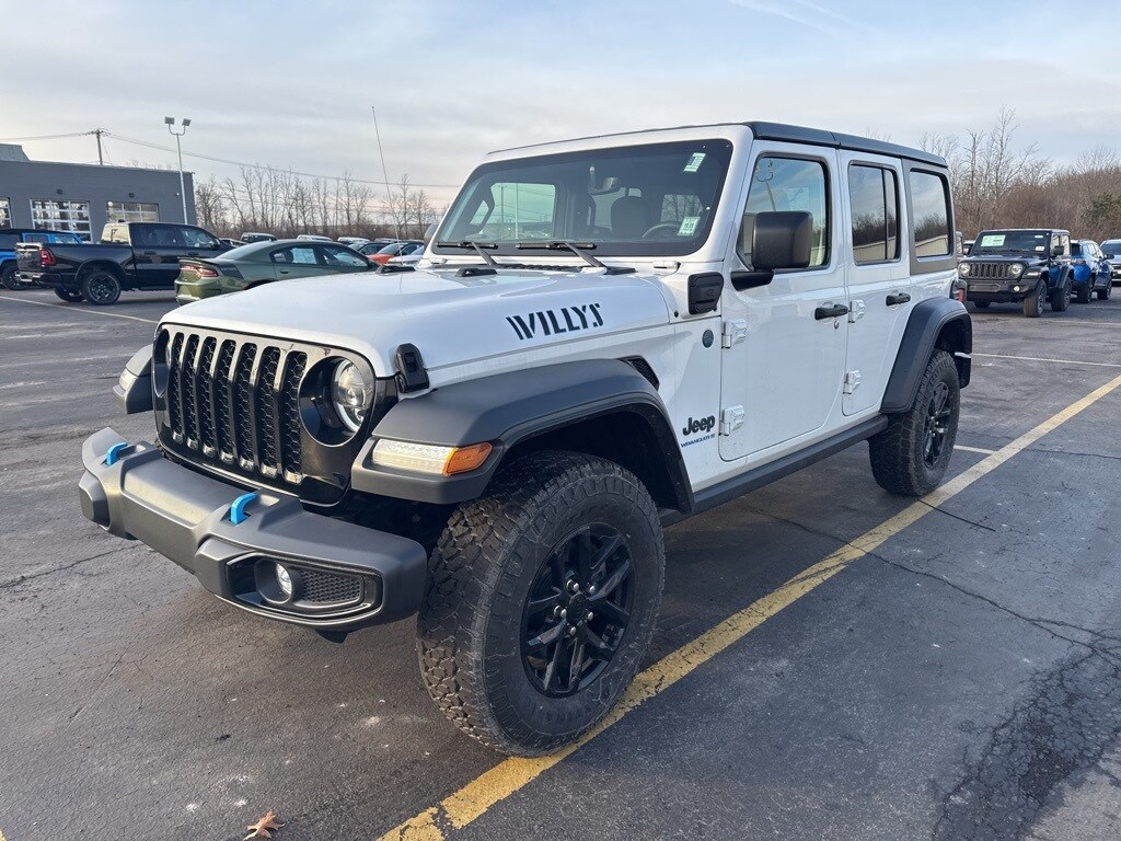 2023 Jeep Wrangler Base 4xe Bright White Clearcoat Clean CARFAX. CARFAX One-Owner. 2.0L I4 DOHC, 1-Year SiriusXM Guardian Trial, 4G LTE Wi-Fi Hot Spot, 4xe 4-Wheel Drive Swing Gate Decal, 5-Year SiriusXM Traffic Service, 5-Year SiriusXM Travel Link Service, 8.4" Radio Group, 8.4" Touchscreen Display, 97 MPH Vehicle Max Speed Calibration, Anti-Spin Differential Rear Axle, Apple CarPlay, Auto-Dimming Rear-View Mirror, Black Grille, Cold Weather Group, Convenience Group, Emergency/Assistance Call, For Details, Visit DriveUconnect.com, Front LED Fog Lamps, Google Android Auto, GPS Antenna Input, GPS Navigation, HD Radio, Heated Front Seats, Heated Steering Wheel, Integrated Center Stack Radio, Integrated Voice Command w/Bluetooth, LED Headlamp & Fog Lamp Group, LED Premium Reflector Headlamps, Molded-In-Color Fender Flares (2-Piece), MOPAR All-Weather Floor Mats, Normal Duty Suspension, Off-Road Info Pages, Quick Order Package 29W Willys, Radio: Uconnect 4C Nav w/8.4" Display, Remote Start System, SiriusXM Traffic Plus, SiriusXM Travel Link, Universal Garage Door Opener, USB Host Flip, Wheels: 17" x 7.5" Black Aluminum, Willys, Willys 4xe Hood Decal.