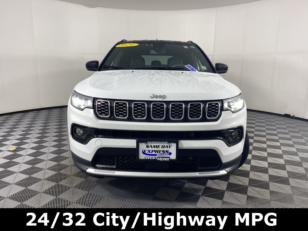 2024 Jeep Compass Limited CARFAX One-Owner. Clean CARFAX. 4G LTE Wi-Fi Hot Spot, ABS brakes, Apple CarPlay/Android Auto, Auto-dimming Rear-View mirror, Automatic temperature control, Electronic Stability Control, Emergency communication system: Jeep Connect, Front fog lights, Fully automatic headlights, Heated door mirrors, Heated front seats, Heated steering wheel, Outside temperature display, ParkView Rear Back-Up Camera, Power driver seat, Radio: Uconnect 5 w/10.1" Display, Remote keyless entry, SiriusXM Radio Service, Split folding rear seat, Steering wheel mounted audio controls, Wheels: 18" x 7" Painted Diamond Cut Aluminum.