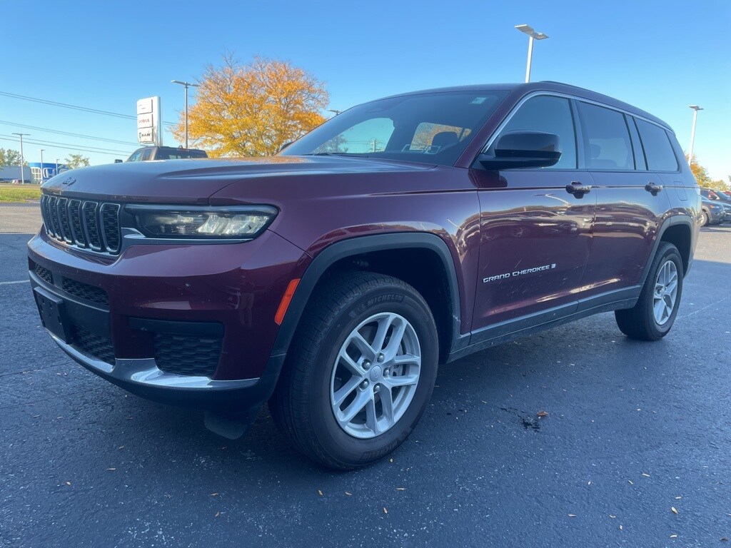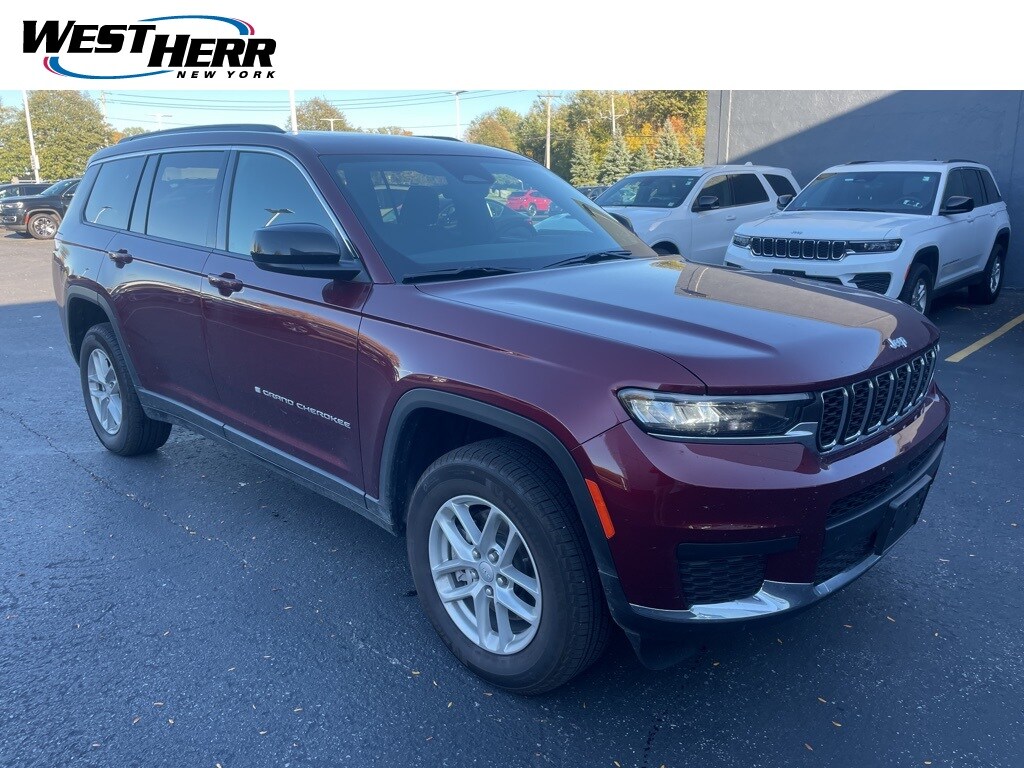 2025 Jeep Grand Cherokee L Laredo Velvet Red Pearlcoat CARFAX One-Owner. Clean CARFAX. 115V Auxiliary Power Outlet, 3rd Row Charge-Only USB Ports, 3rd row seats: split-bench, 4-Wheel Disc Brakes, ABS brakes, Cloth Seats, Dual front impact airbags, Dual front side impact airbags, Electronic Stability Control, Front Bucket Seats, Heated Front Seats, Heated Steering Wheel, Knee airbag, Laredo X, Luxury Tech Group I, Manual Fold Seatbacks, Occupant sensing airbag, Overhead airbag, ParkView Rear Back-Up Camera, Power driver seat, Power Liftgate, Power Sunroof, Quick Order Package 23D Laredo X, Radio: Uconnect 5 w/8.4" Display, Rain Sensitive Windshield Wipers, Reclining 3rd row seat, Remote keyless entry, Remote Start System, Selectable Tire Fill Alert, Split folding rear seat, Steering wheel mounted audio controls, Tachometer, Voltmeter, Wireless Charging Pad.