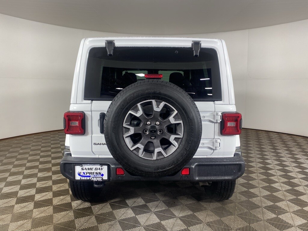 ONE OWNER, CLEAN CARFAX/NO ACCIDENTS REPORTED, REMAINDER OF FACTORY WARRANTY, BLUETOOTH/HANDS FREE, BACK UP CAMERA, 4 WHEEL DRIVE, APPLE CAR PLAY, ANDROID AUTO, PROFESSIONALLY DETAILED, 4G LTE Wi-Fi Hot Spot, Alloy wheels, Apple CarPlay/Android Auto, Auto High Beam Headlamp Control, Blind Spot & Cross Path Detection, Body Color 3-Piece Hard Top, Brake assist, Cloth Low-Back Bucket Seats, Delay-off headlights, Electronic Stability Control, Freedom Panel Storage Bag, Front Bucket Seats, Front fog lights, Front License Plate Bracket (DISC), Fully automatic headlights, Heated door mirrors, Heated front seats, Heated steering wheel, Heavy Duty Suspension w/Gas Shocks, Non-Lock Fuel Cap w/o Discriminator, ParkSense Rear Park Assist System, ParkView Rear Back-Up Camera, Power door mirrors, Quick Order Package 22G Sahara, Radio: Uconnect 5 w/12.3" Display, Rear Window Defroster, Rear Window Wiper/Washer, Safety Group, Side Steps, Speed control, Split folding rear seat, Telescoping steering wheel, Tilt steering wheel, Traction control, Variably intermittent wipers.