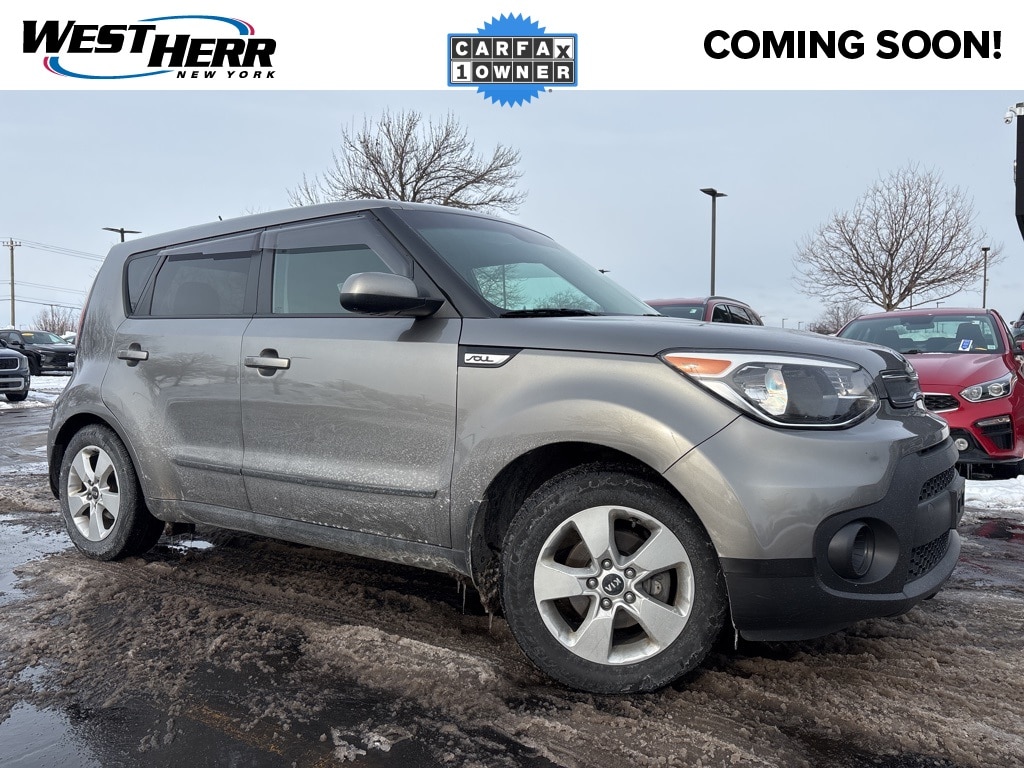 Recent Arrival! 2018 Kia Soul Base CARFAX One-Owner. Titanium Gray, Apple Car Play and Android Auto, Back Up Camera, Touch Screen Radio, Bluetooth, Power Windows, Door Locks & Outside Mirrors, Roof Rack Ready (Mounting Points), Rear Privacy Glass, USB / Auxiliary Input Jacks, Hill-start Assist Control (HAC), AM/FM/MP3 w/ 7" Touchscreen & Rear Camera, 16" Alloy Wheels, Remote keyless entry, Speed control, Steering wheel mounted audio controls.