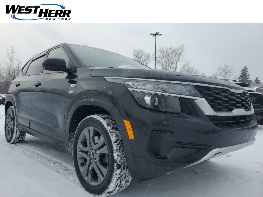 2021 Kia Seltos LX CARFAX One-Owner. ABS brakes, Apple CarPlay & Android Auto, Cargo Tray, Carpeted Floor Mats, Cloth Seat Trim, Electronic Stability Control, Exterior Parking Camera Rear, Fully automatic headlights, Illuminated entry, Outside temperature display, Remote keyless entry, Security system, Split folding rear seat, Spoiler, Steering wheel mounted audio controls, Wheels: 17" Alloy w/Dark Gray Finish.