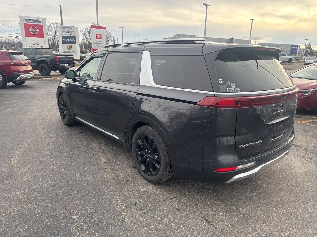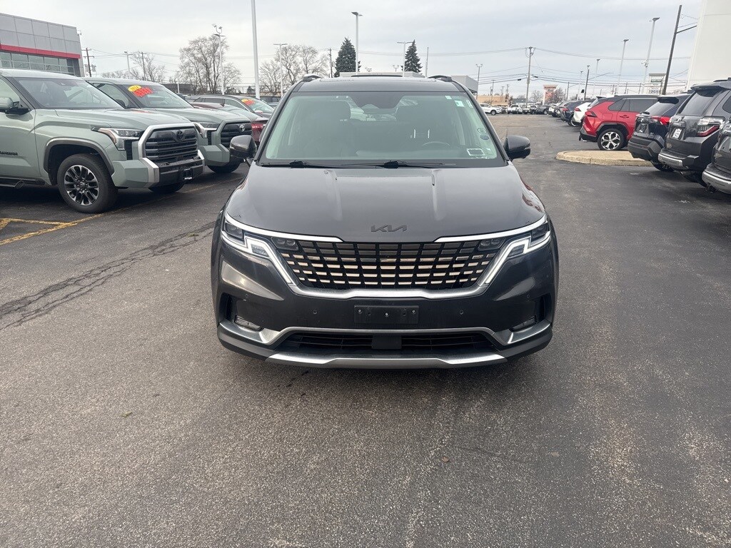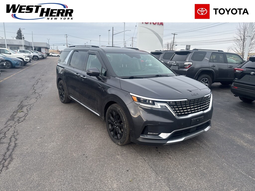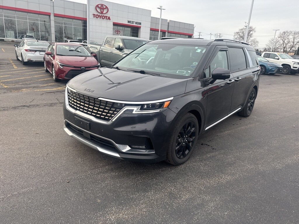 2022 Kia Carnival SX Prestige Pantera Metal Clean CARFAX. 12 Speakers, 3rd row seats: split-bench, 4-way Power Driver's Lumbar Support, 4-Wheel Disc Brakes, 8 Way Power Driver's Seat, 8 Way Power Front Passenger's Seat, Air Conditioning, Apple CarPlay & Android Auto, Bumpers: body-color, Compass, Cross Bars, Driver vanity mirror, Driver's Seat & Mirrors Memory System, Dual front impact airbags, Dual front side impact airbags, Electronic Stability Control, Four wheel independent suspension, Front Bucket Seats, Front Center Armrest, Front dual zone A/C, Front reading lights, Heated & Ventilated Front Bucket Seats, Heated front seats, Heated rear seats, Heated steering wheel, Knee airbag, Leather Shift Knob, Luxury Carpeted Floor Mats, Memory seat, Occupant sensing airbag, Overhead airbag, Power door mirrors, Power Liftgate, Power moonroof, Power passenger seat, Power steering, Pure Leather Seat Trim, Radio: AM/FM/HD Audio System, Rear reading lights, Rear window defroster, Reclining 3rd row seat, Remote keyless entry, Split folding rear seat, Tachometer, Telescoping steering wheel, Tilt steering wheel, Trip computer, Ventilated front seats, Ventilated rear seats. 19/26 City/Highway MPG