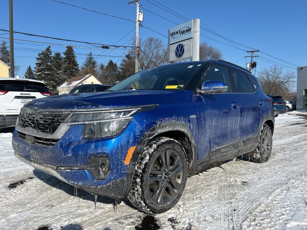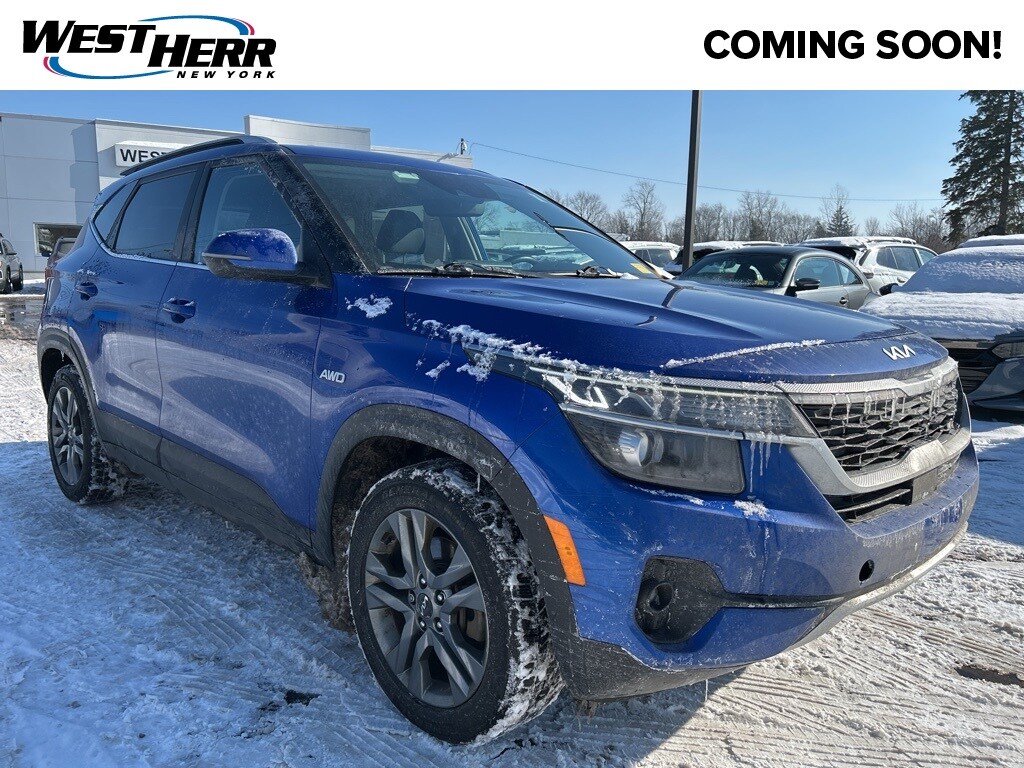 2022 Kia Seltos S Neptune Blue Apple CarPlay & Android Auto, Cloth & Sofino Premium Leatherette Seat Trim, Exterior Parking Camera Rear, Four wheel independent suspension, Fully automatic headlights, Heated door mirrors, Heated front seats, Navigation System, Steering wheel mounted audio controls, Turn signal indicator mirrors, Variably intermittent wipers, Wheels: 17" Alloy w/Dark Gray Finish. 27/31 City/Highway MPG