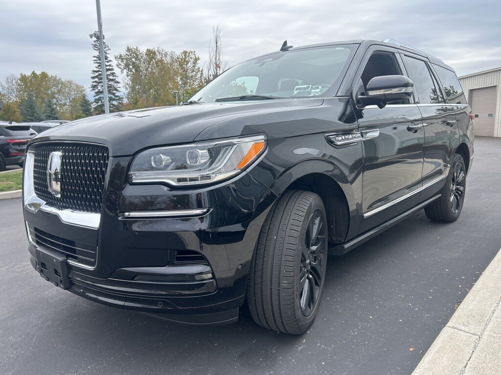Infinite Black Metallic Clearcoat 2023 Lincoln Navigator Reserve 4WD 10-Speed Automatic V6 4WD, Roast w/Prem Lthr Auto Htd/Ventiltd Perfect Position Seats, 26mm Radiator, Body-Color Exterior Mirror Finish, Class IV w/4-Pin & 7-Pin Connectors, Electronic Traction Assist (eLSD), Equipment Group 201A Reserve I, Front Tow Hooks, Heavy-Duty Trailer Tow Package, Illuminated 1st & 2nd Row Seat Belts, Lincoln Lit Star in Grille, Luxury Package, Monochromatic Lincoln Badge, Monochromatic Lincoln Grille, Monochromatic Package, Perfect Position Seats (30-Way) w/Active Motion, Pro-Trailer Backup Assist 2.0, Radio: Revel Ultima 3D Audio System w/28 Speakers, Smart Trailer Tow, Tiered Cargo Area Management System, Trailer Brake Controller, Trailer Sway Control, Wheels: 22" Black Aluminum.