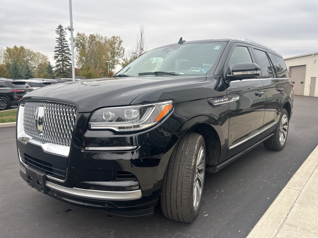 Infinite Black Metallic Clearcoat 2024 Lincoln Navigator Premiere 4WD 10-Speed Automatic V6 4WD, Black Onyx w/Prem Lthr Auto Htd/Ventiltd Perfect Position Seats, Equipment Group 100A Standard, Navigator Plus Exterior Package, Panoramic Vista Roof w/Power Sunshade, Power Deployable Illuminated Running Boards, Wheels: 22" Bright Machined Aluminum.