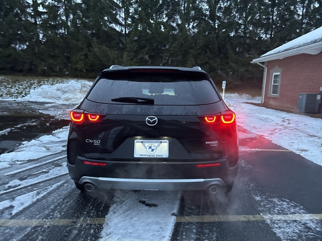 2023 Mazda CX-50 2.5 Turbo Jet Black Mica 20" x 8J Aluminum Alloy Wheels, 4-Wheel Disc Brakes, ABS brakes, AppLink/Apple CarPlay and Android Auto, Auto-dimming Rear-View mirror, Automatic temperature control, Cargo Blocks, Cargo Net, Cargo Package, Dual front impact airbags, Dual front side impact airbags, Electronic Stability Control, Emergency communication system: MAZDA CONNECT, Fully automatic headlights, Garage door transmitter: HomeLink, Heated door mirrors, Heated front seats, Illuminated entry, Outside temperature display, Power driver seat, Power Liftgate, Power moonroof.