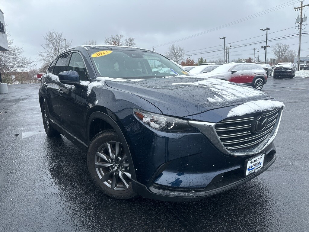 Certified. Recent Arrival! CARFAX One-Owner. Priced below KBB Fair Purchase Price! 4D Sport Utility Deep Crystal Blue Mica 2023 Mazda CX-9 20/26 City/Highway MPG Touring AWD 6-Speed Automatic 2.5L 4-Cylinder 20/26 City/Highway MPG ONE OWNER, BLUETOOTH, BACK UP CAMERA, ALL WHEEL DRIVE, APPLE CARPLAY/ANDROID AUTO, PROFESSIONALLY DETAILED, CX-9 Touring, 2.5L 4-Cylinder, AWD, 4.411 Axle Ratio, ABS brakes, AppLink/Apple CarPlay and Android Auto, Auto High-beam Headlights, Auto-dimming Rear-View mirror, Automatic temperature control, Brake assist, Carpeted Cargo Mat, Compass, Dual front impact airbags, Dual front side impact airbags, Electronic Stability Control, Emergency communication system: MAZDA CONNECT, Exterior Parking Camera Rear, First Aid Kit, Front Center Armrest, Front reading lights, Fully automatic headlights, Garage door transmitter: HomeLink, Heated door mirrors, Heated Front Bucket Seats, Heated front seats, Illuminated entry, Infotainment System Voice Command, Leather Seat Trim, Leather Shift Knob, Leather steering wheel, Occupant sensing airbag, Overhead airbag, Overhead console, Pandora Internet Radio Integration, Power door mirrors, Power driver seat, Power Liftgate, Power moonroof, Radio Broadcast Data System Program Information, Radio: AM/FM Sound System, Rain sensing wipers, Rear air conditioning, Rear window defroster, Rear window wiper, Remote keyless entry, SMS Text Msg Audio Delivery & Reply, Speed control, Speed-sensing steering, Split folding rear seat, Steering wheel mounted audio controls, Telescoping steering wheel, Turn signal indicator mirrors, Variably intermittent wipers, Wheel Locks, Wheels: 18" x 8J Aluminum Alloy.