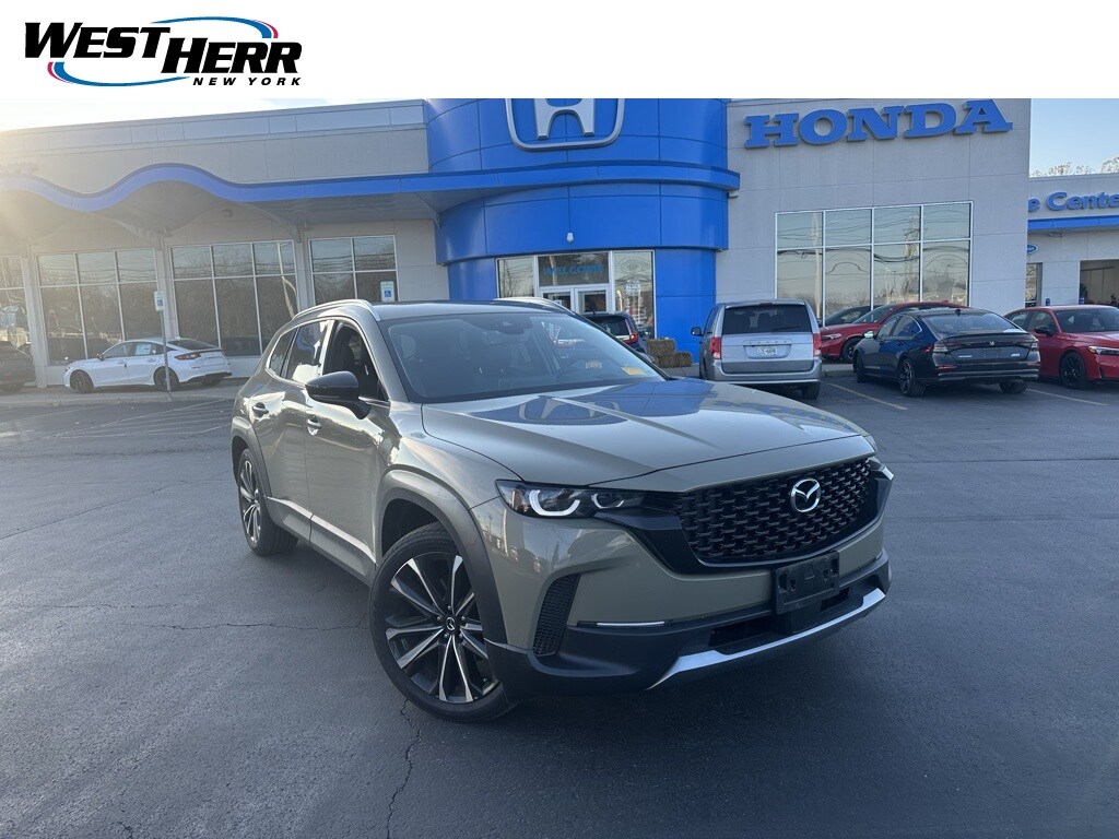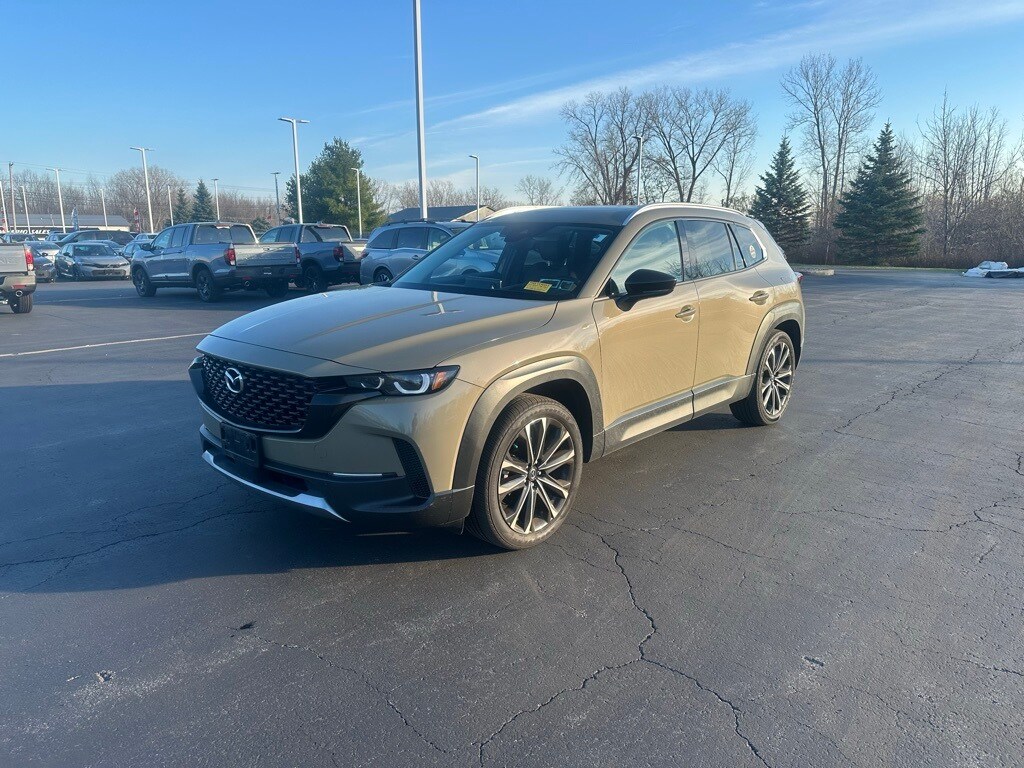 CX-50 2.5 Turbo Premium Package, 4D Sport Utility, 2.5L I4 Turbocharged DOHC 16V LEV3-ULEV70 227hp, 6-Speed Automatic, AWD, Zircon Sand Metallic, Black W/Brown Leather, 12 Speakers, 20" x 8J Aluminum Alloy Wheels, 4-Wheel Disc Brakes, Alloy wheels, AM/FM radio: SiriusXM, AppLink/Apple CarPlay and Android Auto, Auto High-beam Headlights, Automatic temperature control, Cargo Blocks, Cargo Net, Cargo Package, Dual front impact airbags, Dual front side impact airbags, Electronic Stability Control, Exterior Parking Camera Rear, Front Center Armrest, Front dual zone A/C, Fully automatic headlights, Heated & Ventilated Front Bucket Seats, Heated door mirrors, Leather Seat Trim, Leather steering wheel, Memory seat, Power Liftgate, Power moonroof, Power passenger seat, Radio: AM/FM/HD Audio System, Rain sensing wipers, Rear window wiper, Remote keyless entry, Steering wheel mounted audio controls, Traction control, Turn signal indicator mirrors. 2024 Mazda CX-50 2.5 Turbo Premium Package Zircon Sand Metallic