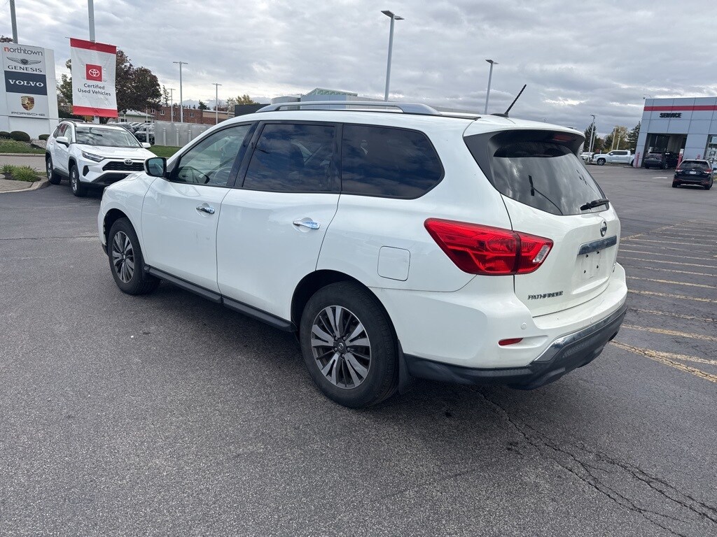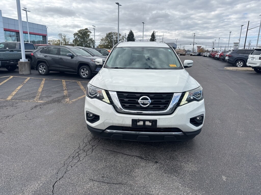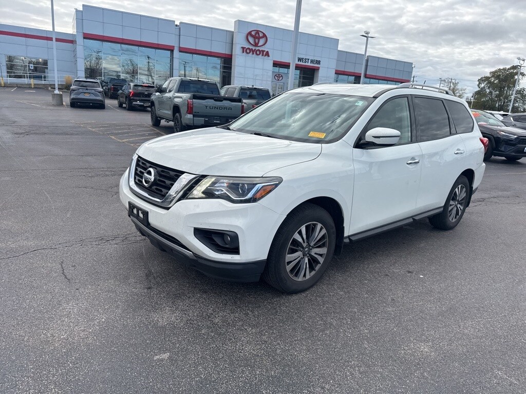2018 Nissan Pathfinder SV Glacier White (Fleet) Clean CARFAX. 3rd row seats: bench, 4-Wheel Disc Brakes, 6 Speakers, Activation Disclaimer, Air Conditioning, Blind Spot Warning, Bumpers: body-color, Carpeted Floor Mats (4-pc Set), CD player, Cloth Seating Surfaces, Delay-off headlights, Driver door bin, Dual front impact airbags, Dual front side impact airbags, Electronic Stability Control, Front Bucket Seats, Front Center Armrest, Front reading lights, Illuminated entry, Leather steering wheel, Occupant sensing airbag, Overhead airbag, Panic alarm, Passenger vanity mirror, Power steering, Radio: AM/FM/CD Audio System w/NissanConnect, Rear air conditioning, Rear Parking Sensors, Rear reading lights, Rear window defroster, Reclining 3rd row seat, Remote keyless entry, Roof rack: rails only, Speed-sensing steering, Split folding rear seat, Spoiler, Steering wheel mounted audio controls, Tachometer, Telescoping steering wheel, Tilt steering wheel, Trip computer. 19/26 City/Highway MPG