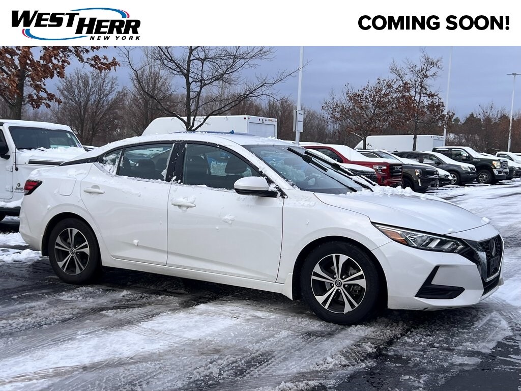 2020 Nissan Sentra SV Aspen White Tricoat CARFAX One-Owner. 16" Alloy Wheels, 6-Speaker Audio System, Blind Spot Warning, Front Bucket Seats, Fully automatic headlights, Radio: AM/FM w/RDS/MP3/Aux-In, Rear Parking Sensors.
