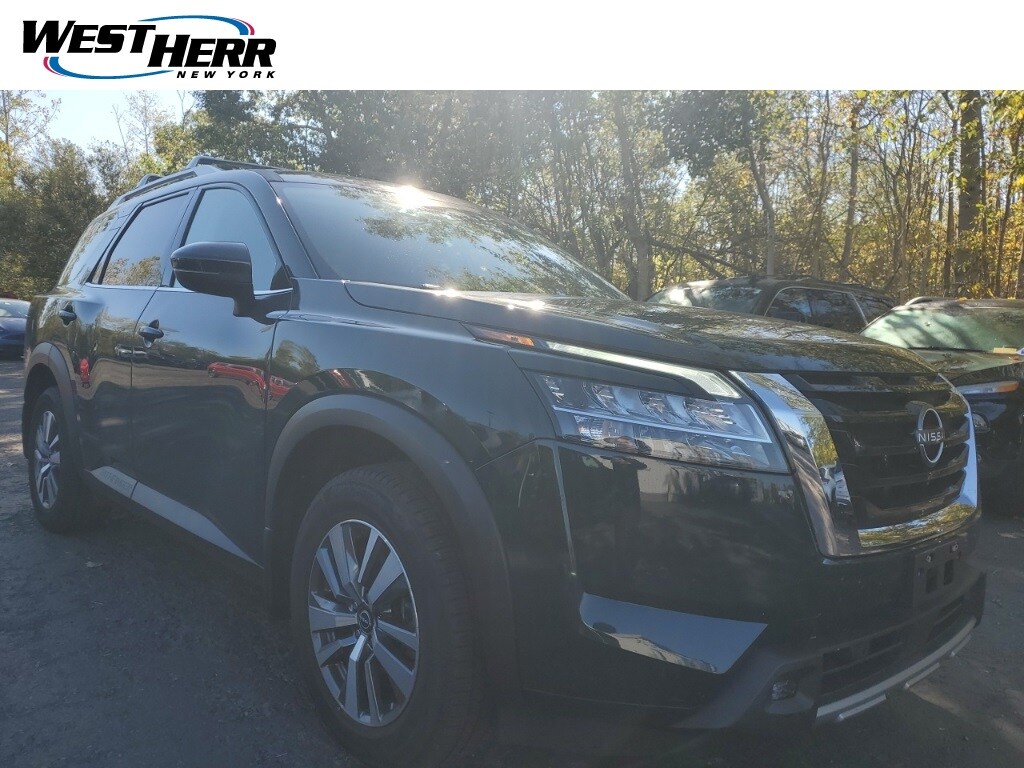 2022 Nissan Pathfinder SL CARFAX One-Owner. Clean CARFAX. ABS brakes, AM/FM radio: SiriusXM, Automatic temperature control, Bench Seat Carpeted Floor Mats (Set of 4), Black Splash Guards (Set of 4), Cross Bars, Electronic Stability Control, Emergency communication system: NissanConnect Services, Exterior Parking Camera Rear, Front fog lights, Fully automatic headlights, Garage door transmitter: HomeLink, Heated door mirrors, Heated Front Bucket Seats, Heated steering wheel, Leather Seating Surfaces, Navigation system: NissanConnect Navigation, NissanConnect w/Navigation & Services, Power Liftgate, Remote keyless entry, Split folding rear seat, Steering wheel mounted audio controls.