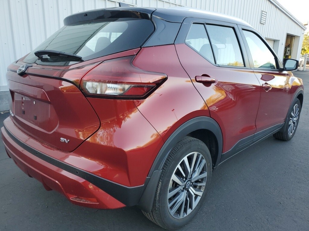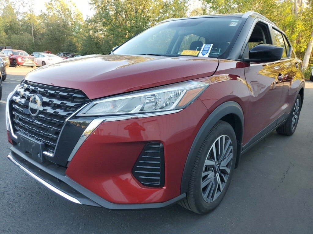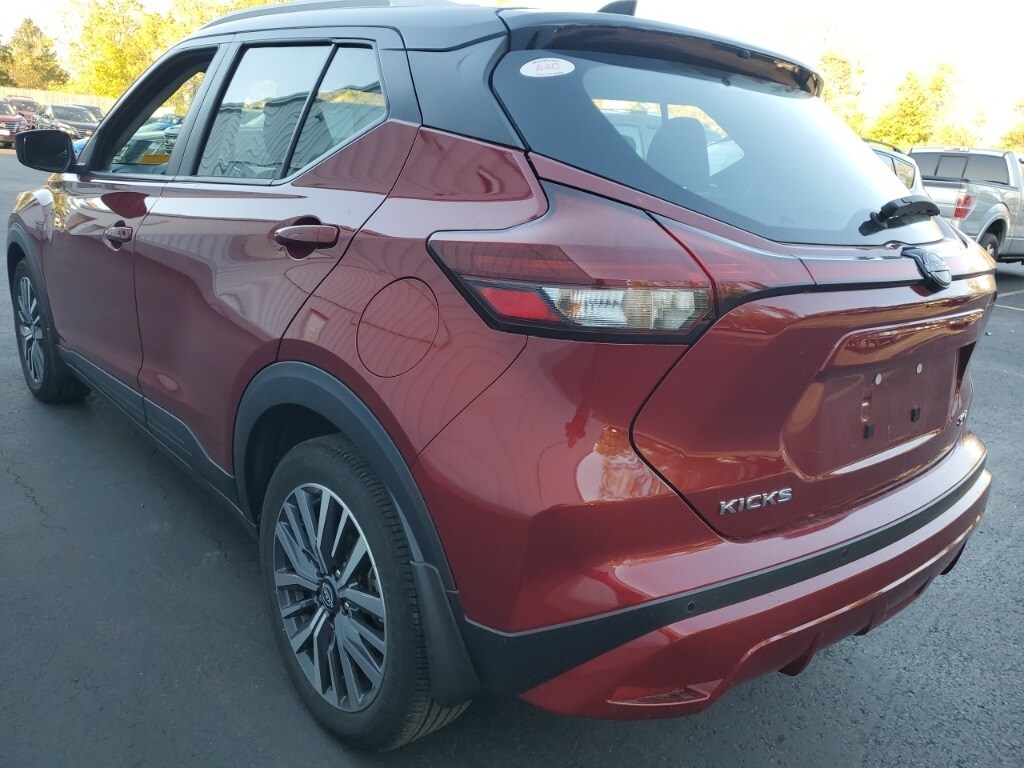 Certified. 2023 Nissan Kicks SV CARFAX One-Owner. NISSAN CERTIFIED! 7 YEAR/ 100,000 MILE LIMITED POWERTRAIN WARRANTY INCLUDED. SEE DEALER FOR DETAILS., ABS brakes, AM/FM radio: SiriusXM, Apple CarPlay/Android Auto, Blind Spot Warning, Carpeted Floor Mats w/Cargo Mat, Electronic Stability Control, Fully automatic headlights, Heated door mirrors, Illuminated entry, Outside temperature display, Rear Parking Sensors, Remote keyless entry, Special Paint - Scarlet Ember/Super Black, Splash Guards Grain (4 Piece), Split folding rear seat, Steering wheel mounted audio controls.
