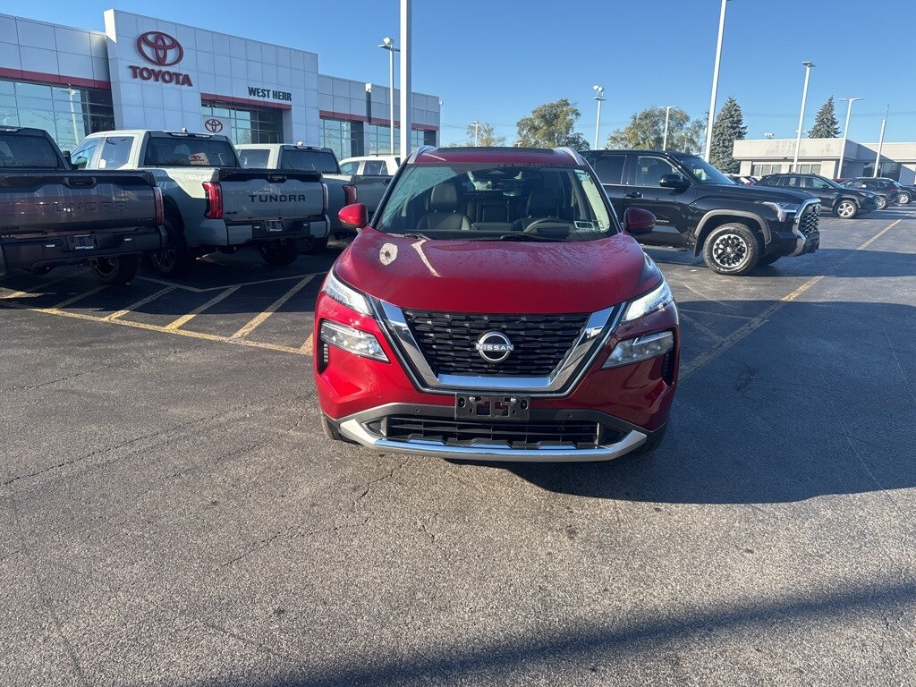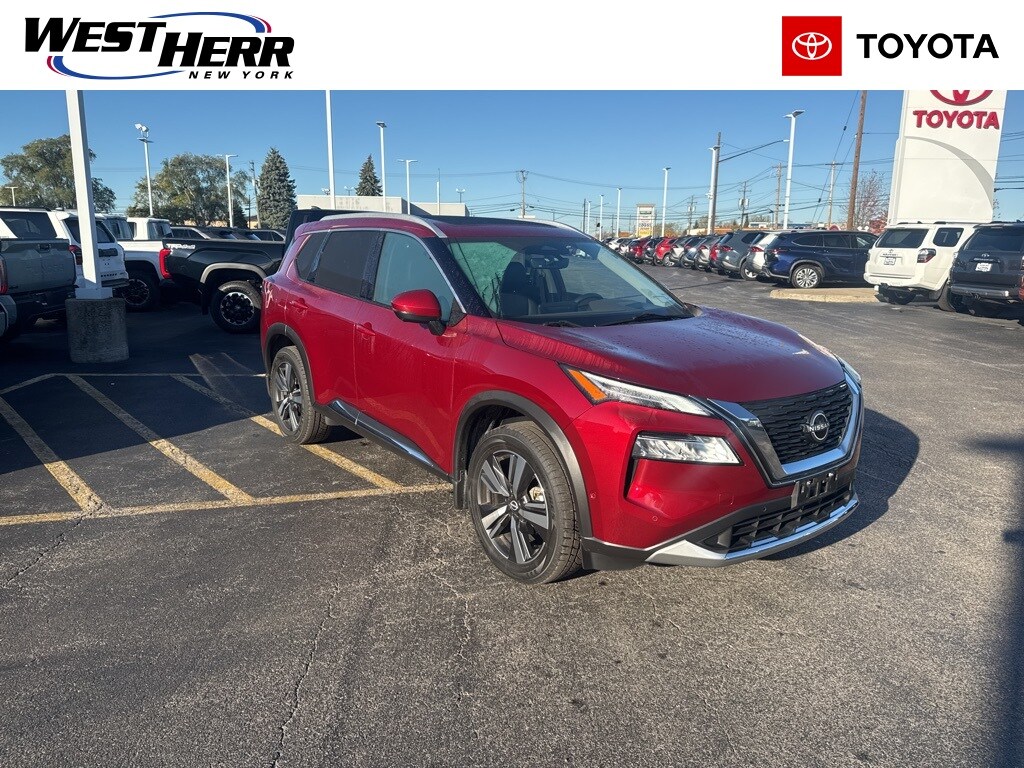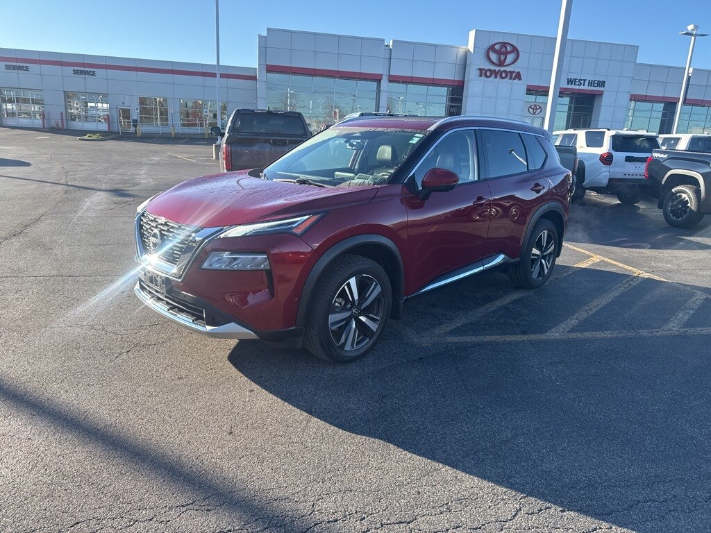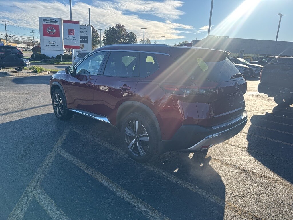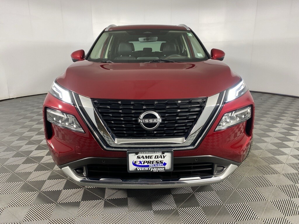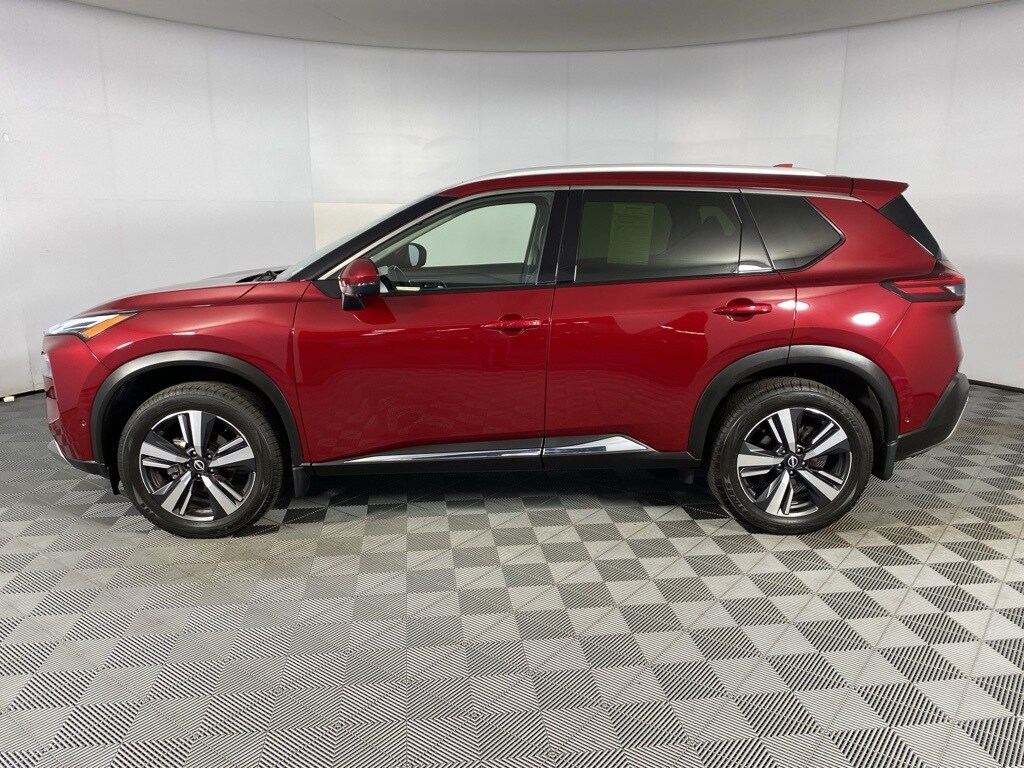 2023 Nissan Rogue Platinum Scarlet Ember Tintcoat Clean CARFAX. CARFAX One-Owner. 10 Speakers, ABS brakes, Air Conditioning, Auto-dimming Rear-View mirror, Bose Premium Audio System, Brake assist, Bumpers: body-color, Chrome Rear Bumper Protector, Delay-off headlights, Dual front impact airbags, Dual front side impact airbags, First Aid Kit, Floor Mats w/2-Piece Cargo Area Protector, Four wheel independent suspension, Frameless Rearview Mirror w/Universal Remote, Front Bucket Seats, Front Center Armrest, Front dual zone A/C, Fully automatic headlights, Heads-Up Display, Heated door mirrors, Heated Front Bucket Seats, Heated front seats, Heated steering wheel, Illuminated entry, Knee airbag, Leather steering wheel, Memory seat, Navigation system: NissanConnect Navigation, NissanConnect featuring Apple CarPlay and Android Auto, Occupant sensing airbag, Overhead airbag, Overhead console, Panic alarm, Platinum Premium Package, Power Liftgate, Power moonroof, Power passenger seat, Power steering, Quilted Semi-Aniline Leather Seat Trim, Radio data system, Rear Heated Seats, Rear side impact airbag, Remote keyless entry, Speed control, Split folding rear seat, Tachometer, Telescoping steering wheel, Tilt steering wheel, Tri-Zone HVAC, Trip computer, Turn signal indicator mirrors. 28/34 City/Highway MPG