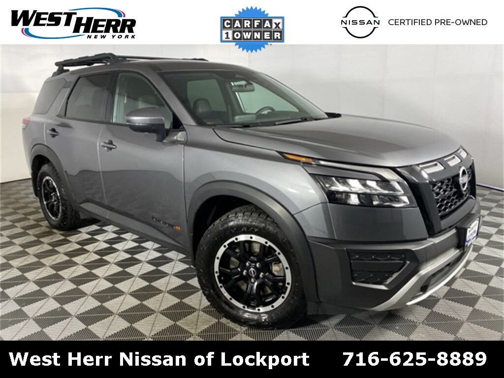 Certified. 2024 Nissan Pathfinder Rock Creek Clean CARFAX. NISSAN CERTIFIED! 7 YEAR/ 100,000 MILE LIMITED POWERTRAIN WARRANTY INCLUDED. SEE DEALER FOR DETAILS., ABS brakes, AM/FM radio: SiriusXM, Automatic temperature control, Black Splash Guards (Set of 4), Electronic Stability Control, Front fog lights, Fully automatic headlights, Heated Front Bucket Seats, Illuminated entry, Leatherette-Appointed Seating Surfaces, NissanConnect featuring Apple CarPlay and Android Auto, Power driver seat, Rear Parking Sensors, Remote keyless entry, Rock Creek AS Floor Liners & Cargo Area Protector, Rock Creek Roof Rack, Security system, Split folding rear seat, Steering wheel mounted audio controls, Wheels: 18" x 8J Machined Alloy w/Black Finish.