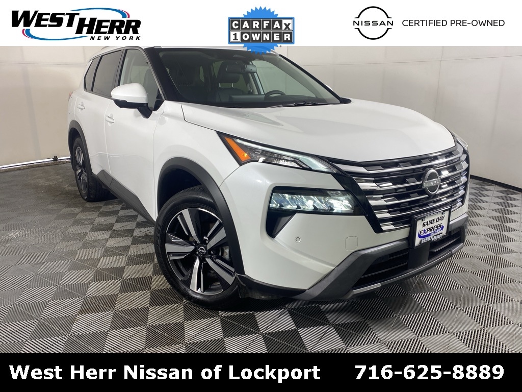 Certified. 2025 Nissan Rogue SL CARFAX One-Owner. Clean CARFAX. Rogue SL, ABS brakes, AM/FM radio: SiriusXM with 360L, Android Auto and Apple CarPlay, Automatic temperature control, Chrome Rear Bumper Protector, Delay-off headlights, First Aid Kit, Floor Mats with 2-Piece Cargo Area Protector, Fully automatic headlights, Garage door transmitter: myQ Connected Garage, Head-Up Display, Heated door mirrors, Heated Front Bucket Seats with 8-Way Power Driver Seat and 4-Way Power Passenger Seat, Heated steering wheel, Leather-Appointed Seat Trim, Memory Driver Seat and Outside Mirrors, Motion-Activated Power Liftgate, Navigation system: NissanConnect with Navigation and Services, Panoramic Moonroof, Power driver seat, Power Liftgate, Radio: NissanConnect with Navigation and 6 Speakers, Rear Door Sunshades, Rear Personal Lights, Remote keyless entry, Reverse Tilt-Down Outside Mirrors, SL Premium Package, Split folding rear seat, Steering wheel mounted audio controls, Tri-Zone Automatic Temperature Control, Wheels: 19" Dark Painted Machine Finished Alloy.
