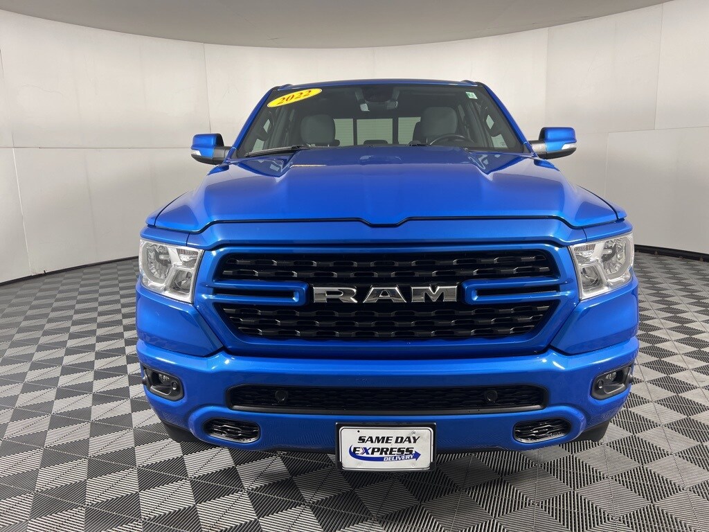 2022 Ram 1500 Big Horn/Lone Star Hydro Blue Pearlcoat CARFAX One-Owner. Clean CARFAX. 115V Auxiliary Power Outlet, 115V Auxiliary Rear Power Outlet, 2nd Row In Floor Storage Bins, 3 Rear Seat Head Restraints, 4 Way Front Headrests, 400W Inverter, 4G LTE Wi-Fi Hot Spot, 8.4" Touchscreen Display, Air Conditioning ATC w/Dual Zone Control, All Plant-Installed Decals, Apple CarPlay, Auto-Dimming Exterior Driver Mirror, Auto-Dimming Rear-View Mirror, Big Horn Badge, Big Horn Level 2 Equipment Group, Black Exterior Mirrors, Black Interior Accents, Black Premium Power Mirrors, Bluetooth Handsfree Phone & Audio, Body Color Exterior Mirrors, Body Color Front Bumper, Body Color Premium Power Mirrors, Body Color Rear Bumper w/Step Pads, Bridgestone Brand Tires, Bucket Seats, Class IV Receiver Hitch, Cluster 7.0" TFT Color Display, Connectivity - US/Canada, Convex Wide-Angle Mirror Insert, Delete LED Lamp - Floor Console Bin, Deluxe Cloth Bucket Seats, Electronic Stability Control, Exterior Mirrors Courtesy Lamps, Exterior Mirrors w/Heating Element, Exterior Mirrors w/Supplemental Signals, For Details, Visit DriveUconnect.com, Front Seat Back Map Pockets, Full Length Floor Console, Global Telematics Box Module (TBM), Glove Box Lamp, Google Android Auto, GPS Antenna Input, Heated Front Seats, Heated Steering Wheel, Integrated Center Stack Radio, Manual Adjust 4-Way Front Passenger Seat, Media Hub w/2 Charge Only USBs, ParkSense Front/Rear Park Assist w/Stop, ParkView Rear Back-Up Camera, Power 2-Way Driver Lumbar Adjust, Power 8-Way Driver Seat, Power Adjustable Pedals, Power-Folding Mirrors, Quick Order Package 27Z Big Horn, Radio: Uconnect 5 W w/8.4" Display, Rear 60/40 Folding Seat, Rear Center Armrest, Rear Dome w/On/Off Switch Lamp, Rear Power Sliding Window, Rear Window Defroster, Remote Start System, Security Alarm, SiriusXM Radio Service, SiriusXM Satellite Radio, Sport Appearance Package, Sport Decal, Sun Visors w/Illuminated Vanity Mirrors, Universal Garage Door Opener, USB Host Flip.
