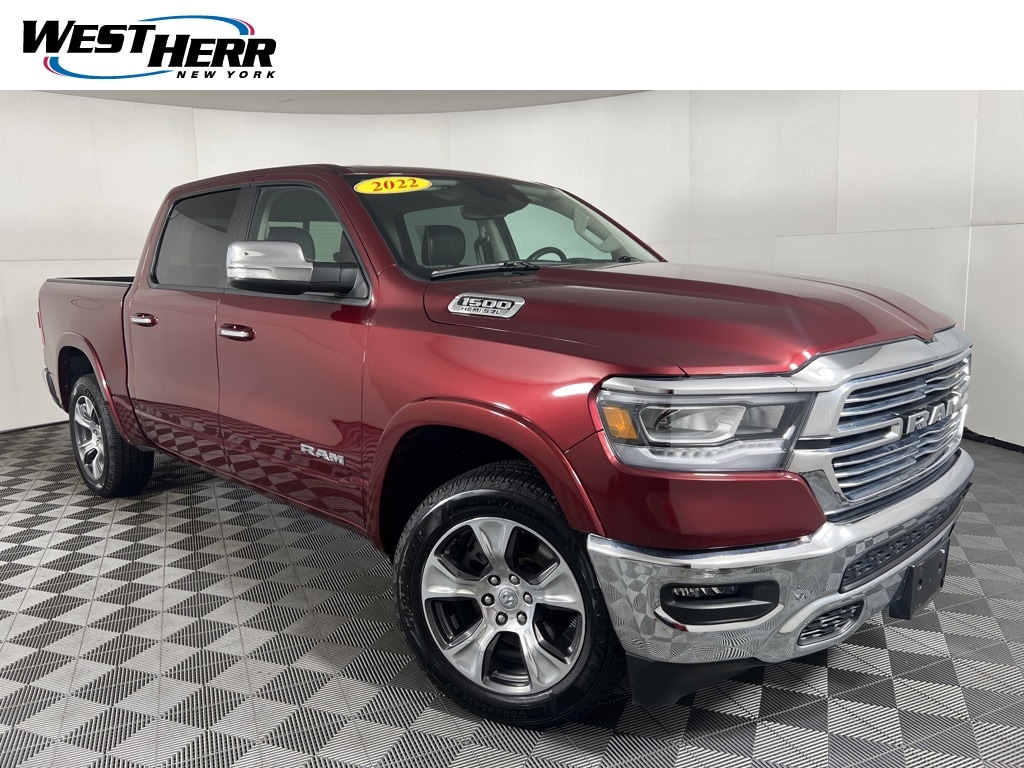 Professionally Detailed, NEW Oil & Filter Change, New Tires, CALIPER FRONT AND REAR SERVICE, ALIGNMENT, NEW ENGINE FILTER, Apple CarPlay/Android Auto, Quick Order Package 25H Laramie. CARFAX One-Owner. 2022 Ram 1500 Laramie Delmonico Red Pearlcoat