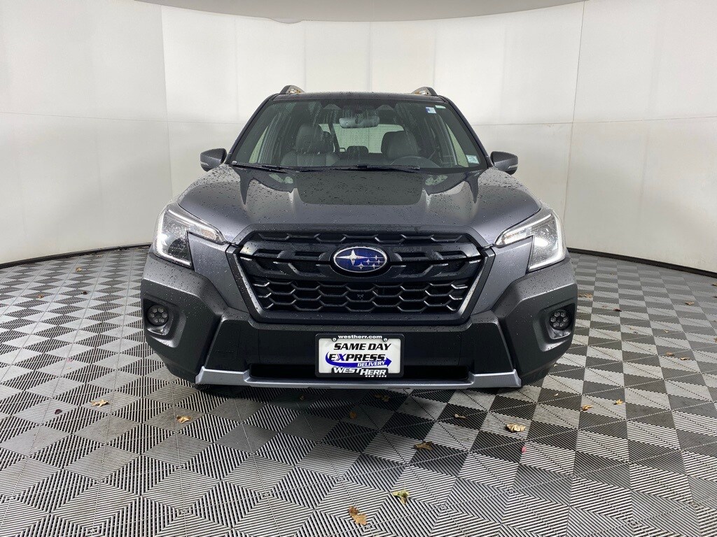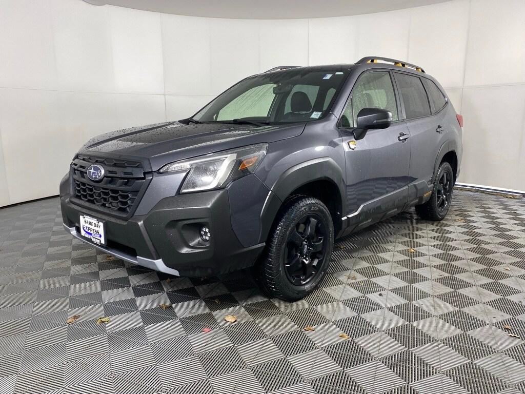 Forester Wilderness, 4D Sport Utility, 2.5L 4-Cylinder DOHC 16V, Lineartronic CVT, AWD, 4-Wheel Disc Brakes, 6 Speakers, Alloy wheels, Automatic temperature control, Dual front impact airbags, Dual front side impact airbags, Electronic Stability Control, Exterior Parking Camera Rear, Front Center Armrest, Front dual zone A/C, Front fog lights, Heated door mirrors, Heated Front Bucket Seats, Power door mirrors, Power driver seat, Power moonroof: Panoramic, Radio: Subaru Starlink 8.0" Multimedia Plus System, Rear window wiper, Remote keyless entry, Speed-sensing steering, STARLINK/Apple CarPlay/Android Auto, Steering wheel mounted audio controls, Turn signal indicator mirrors, Wheels: 17" x 7.0J Matte Black Machine Finish Alloy. 2022 Subaru Forester Wilderness Magnetite Gray Metallic