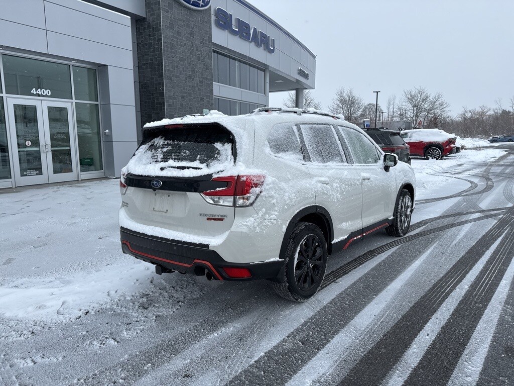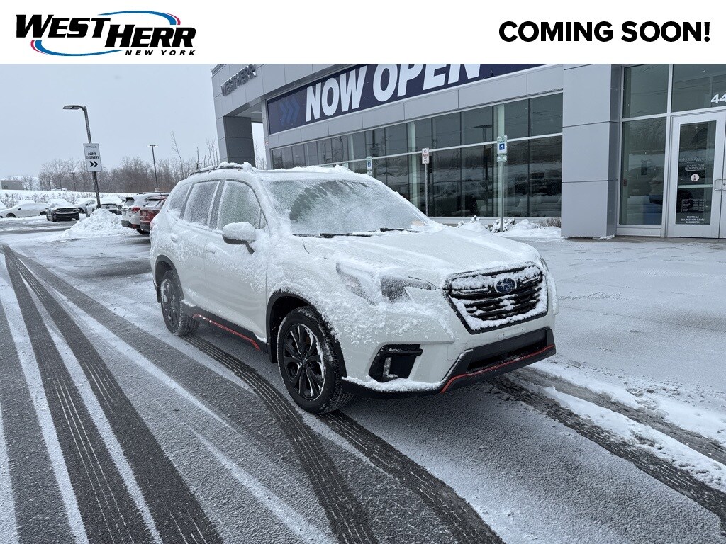 Crystal White Pearl 2022 Subaru Forester Sport AWD Lineartronic CVT 2.5L 4-Cylinder DOHC 16V Forester Sport, 4D Sport Utility, 2.5L 4-Cylinder DOHC 16V, Lineartronic CVT, AWD, 4-Wheel Disc Brakes, Auto High-beam Headlights, Emergency communication system: STARLINK Safety and Security (Subscription Required), Exterior Parking Camera Rear, Four wheel independent suspension, Heated door mirrors, Heated Front Bucket Seats, Illuminated entry, Power moonroof: Panoramic, Radio: Subaru Starlink 6.5" Multimedia Plus System, Remote keyless entry, Sport Cloth Upholstery, Standard Model, STARLINK/Apple CarPlay/Android Auto, Turn signal indicator mirrors, Wheels: 18" x 7.0J Black Finish Aluminum Alloy.