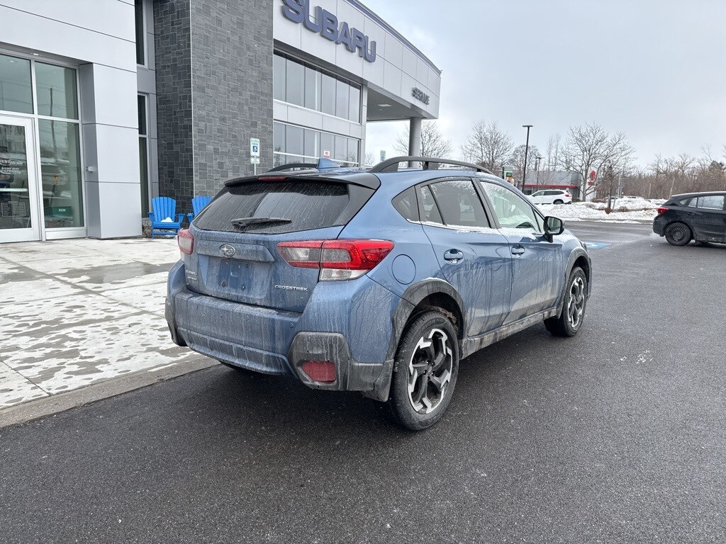 Horizon Blue Pearl 2023 Subaru Crosstrek Limited AWD Lineartronic CVT 2.5L 4-Cylinder DOHC 16V Crosstrek Limited, 4D Sport Utility, 2.5L 4-Cylinder DOHC 16V, Lineartronic CVT, AWD, Gray w/Orange Stitching w/Leather-Trimmed Upholstery, 4-Wheel Disc Brakes, Auto High-beam Headlights, Emergency communication system: STARLINK Safety and Security (Subscription Required), Exterior Parking Camera Rear, Four wheel independent suspension, Heated Front Bucket Seats, Illuminated entry, Leather-Trimmed Upholstery, Radio data system, Radio: Subaru STARLINK 8.0" Multimedia Plus System, Remote keyless entry, Standard Model, STARLINK/Apple CarPlay/Android Auto, Turn signal indicator mirrors, Wheels: 18" x 7.0J Alum Alloy Blk w/Machine Finish.