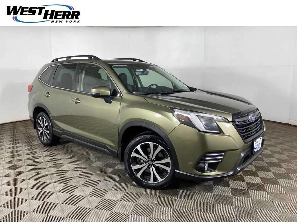 Autumn Green Metallic 2023 Subaru Forester Limited AWD Lineartronic CVT 2.5L 4-Cylinder DOHC 16V Forester Limited, 4D Sport Utility, 2.5L 4-Cylinder DOHC 16V, Lineartronic CVT, AWD, 4-Wheel Disc Brakes, Auto High-beam Headlights, Emergency communication system: STARLINK Safety and Security (Subscription Required), Exterior Parking Camera Rear, Four wheel independent suspension, Fully automatic headlights, Heated door mirrors, Heated Front Bucket Seats, Illuminated entry, Perforated Leather-Trimmed Upholstery, Power Liftgate, Power moonroof: Panoramic, Radio: Subaru Starlink 8.0" Multimedia Plus System, Remote keyless entry, STARLINK/Apple CarPlay/Android Auto, Turn signal indicator mirrors, Wheels: 18" x 7.0 J Black Machine Finish Alloy.