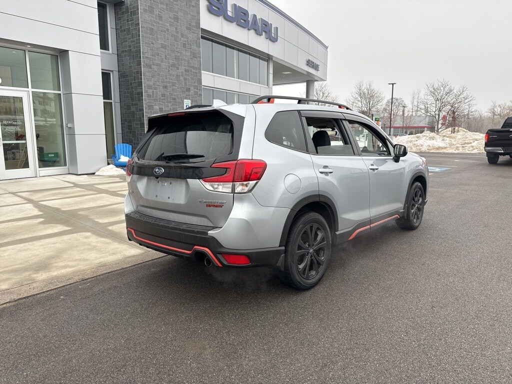 Ice Silver Metallic 2023 Subaru Forester Sport AWD Lineartronic CVT 2.5L 4-Cylinder DOHC 16V Forester Sport, 4D Sport Utility, 2.5L 4-Cylinder DOHC 16V, Lineartronic CVT, AWD, Ice Silver Metallic, Gray Cloth, 4-Wheel Disc Brakes, Auto High-beam Headlights, Emergency communication system: STARLINK Safety and Security (Subscription Required), Exterior Parking Camera Rear, Four wheel independent suspension, Heated door mirrors, Heated Front Bucket Seats, Illuminated entry, Power moonroof: Panoramic, Radio: Subaru Starlink 6.5" Multimedia Plus System, Remote keyless entry, Sport Cloth Upholstery, Standard Model, STARLINK/Apple CarPlay/Android Auto, Turn signal indicator mirrors, Wheels: 18" x 7.0 J Black Finish Aluminum-Alloy.