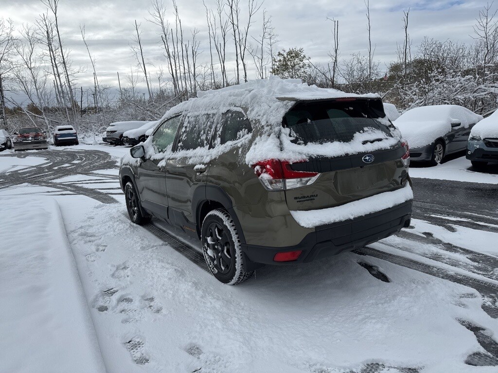 Autumn Green Metallic 2023 Subaru Forester Wilderness AWD Lineartronic CVT 2.5L 4-Cylinder DOHC 16V Forester Wilderness, 4D Sport Utility, 2.5L 4-Cylinder DOHC 16V, Lineartronic CVT, AWD, 4-Wheel Disc Brakes, 8" Audio w/harman/kardon & Power Rear Gate, Auto High-beam Headlights, Emergency communication system: STARLINK Safety and Security (Subscription Required), Exterior Parking Camera Rear, Four wheel independent suspension, harman/kardon 9-Speaker Audio System, Heated door mirrors, Heated Front Bucket Seats, Illuminated entry, Power moonroof: Panoramic, Power Rear Gate, Radio: Subaru Starlink 8.0" Multimedia Nav System, Radio: Subaru Starlink 8.0" Multimedia Plus System, Remote keyless entry, STARLINK/Apple CarPlay/Android Auto, Textured StarTex Upholstery, Turn signal indicator mirrors, Wheels: 17" x 7.0 J Matte Black Finish Alum-Alloy.