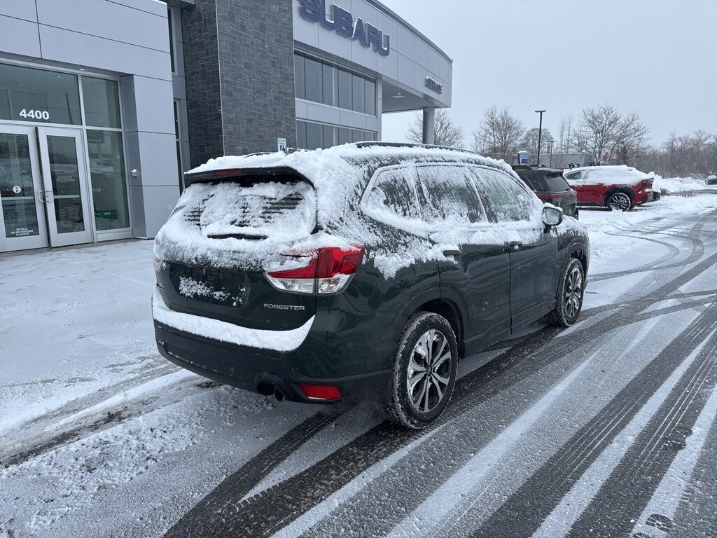 Cascade Green Silica 2023 Subaru Forester Limited AWD Lineartronic CVT 2.5L 4-Cylinder DOHC 16V Forester Limited, 4D Sport Utility, 2.5L 4-Cylinder DOHC 16V, Lineartronic CVT, AWD, Cascade Green Silica, Gray Leather, 4-Wheel Disc Brakes, Auto High-beam Headlights, Auto-Dimming Exterior Mirror w/Approach Light, Auto-Dimming Mirror w/Compass & HomeLink, Emergency communication system: STARLINK Safety and Security (Subscription Required), Exterior Parking Camera Rear, Four wheel independent suspension, harman/kardon 9-Speaker Audio System, Heated door mirrors, Heated Front Bucket Seats, Heated Steering Wheel, Illuminated entry, Nav & harman/kardon & RAB & Heated Steering Wheel, Navigation System, Perforated Leather-Trimmed Upholstery, Power Liftgate, Power moonroof: Panoramic, Radio: Subaru Starlink 8.0" Multimedia Nav System, Remote keyless entry, Reverse Automatic Braking System (RAB), STARLINK/Apple CarPlay/Android Auto, Turn signal indicator mirrors, Wheels: 18" x 7.0 J Black Machine Finish Alloy.