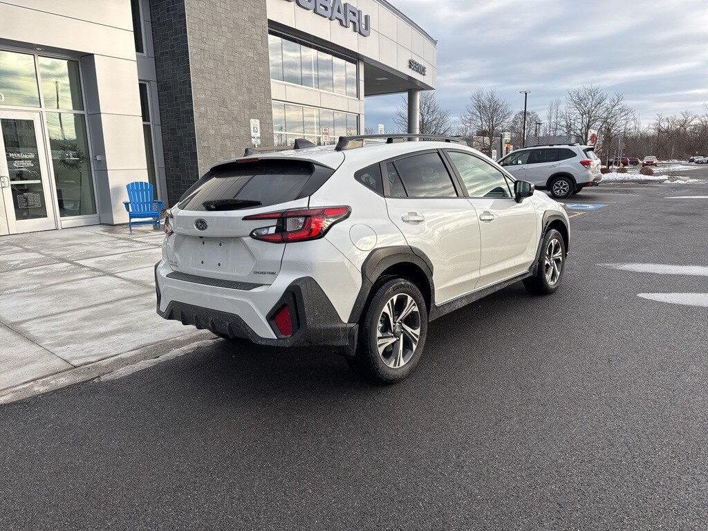 Crystal White Pearl 2024 Subaru Crosstrek Premium AWD Lineartronic CVT 2.0L 4-Cylinder DOHC 16V Crosstrek Premium, 4D Sport Utility, 2.0L 4-Cylinder DOHC 16V, Lineartronic CVT, AWD, 10-Way Power Driver's Seat, 4-Wheel Disc Brakes, All-Weather Package, Auto High-beam Headlights, Blind Spot Detection w/Rear Cross-Traffic Alert, BSD/RCTA & Moonrf & All Weather Pkg & Pwr Dr. Seat, Emergency communication system: STARLINK Safety and Security (Subscription Required), Exterior Parking Camera Rear, Four wheel independent suspension, Heated Exterior Mirrors, Heated Front Seats, Heated Wipers, Illuminated entry, Power Moonroof, Premium Cloth Upholstery, Radio: Subaru STARLINK 11.6" Multimedia Plus Sys, Remote keyless entry, STARLINK/Apple CarPlay/Android Auto, Turn signal indicator mirrors, Wheels: 17" x 7.0J Dark Gray Aluminum Alloy.