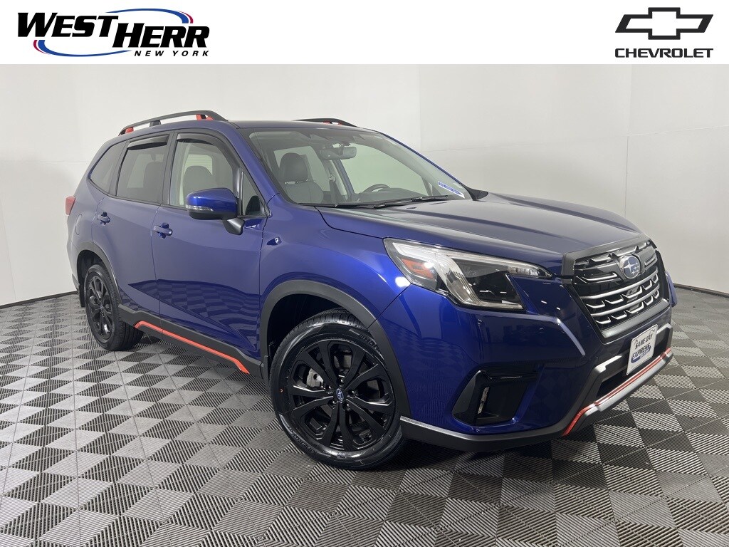 Forester Sport, 4D Sport Utility, 2.5L 4-Cylinder DOHC 16V, Lineartronic CVT, AWD, 6 Speakers, Air Conditioning, AM/FM radio: SiriusXM, Automatic temperature control, Electronic Stability Control, Exterior Parking Camera Rear, Four wheel independent suspension, Front fog lights, Power driver seat, Power moonroof: Panoramic, Power windows, Radio data system, Radio: Subaru STARLINK 6.5" Multimedia Plus System, Speed-sensing steering.