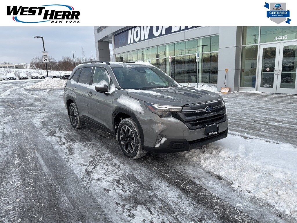 River Rock Pearl 2025 Subaru Forester Premium AWD Lineartronic CVT 2.5L 4-Cylinder DOHC 16V Forester Premium, 4D Sport Utility, 2.5L 4-Cylinder DOHC 16V, Lineartronic CVT, AWD, River Rock Pearl, Black Cloth, Auto High-beam Headlights, Automatic Emergency Steering, Blind-Spot Detection (BSD)/RCTA System, Emergency communication system: MySubaru Safety (3-year free trial), Exterior Parking Camera Rear, Four wheel independent suspension, Heated door mirrors, Heated Front Bucket Seats, Illuminated entry, LED Upgrade, Power moonroof: Panoramic, Power Rear Gate, Power Rear Gate & Blind Spot Detection w/RCTA, Premium Textured Cloth Upholstery, Radio: Subaru 11.6" Multimedia Plus System, Remote keyless entry, Wheels: 17" x 7.0 J Dark Metallic Aluminum-Alloy.