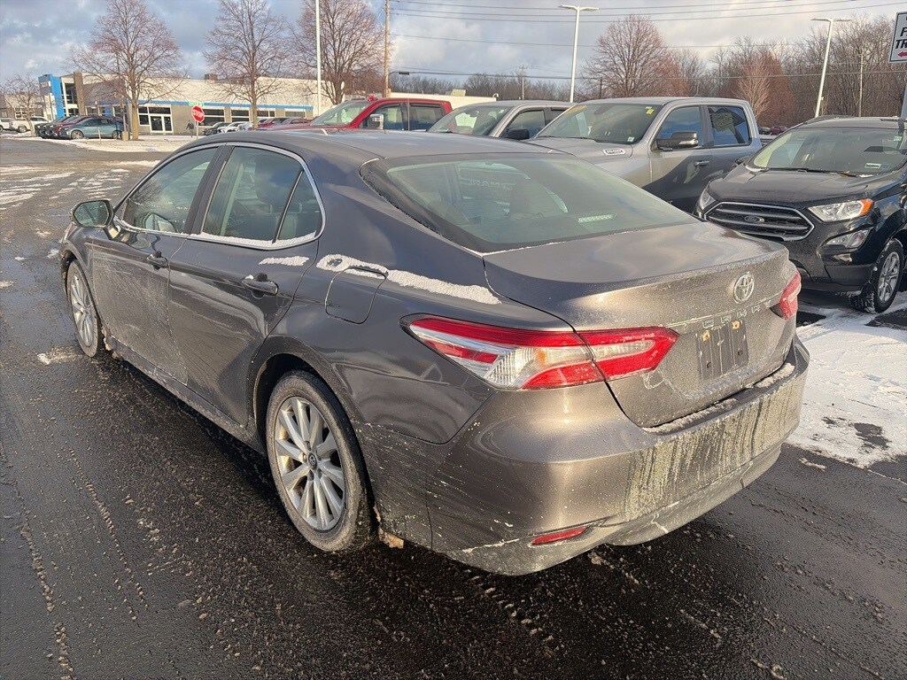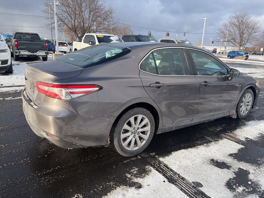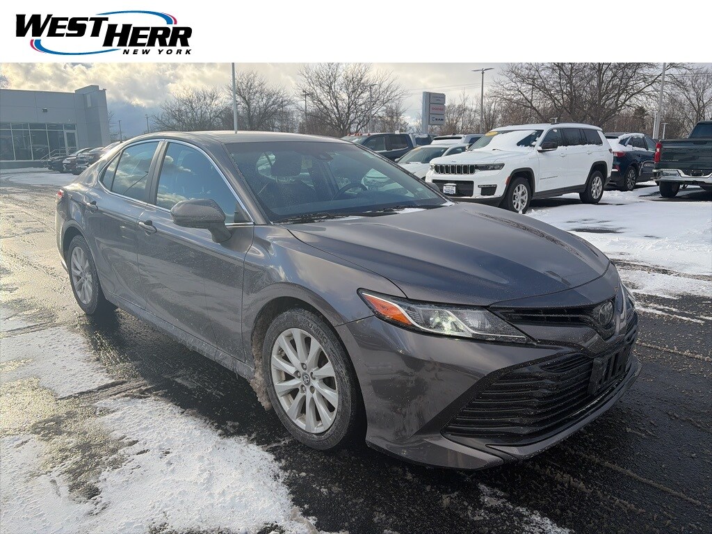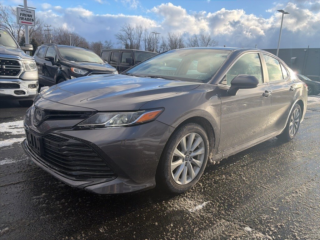 2018 Toyota Camry LE Predawn Gray Mica CARFAX One-Owner. 4-Wheel Disc Brakes, ABS brakes, Dual front impact airbags, Dual front side impact airbags, Electronic Stability Control, Exterior Parking Camera Rear, Fabric Seat Trim, Front Bucket Seats, Front Center Armrest, Knee airbag, Occupant sensing airbag, Overhead airbag, Rear side impact airbag, Split folding rear seat, Tachometer, Trip computer.