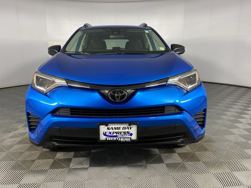 2018 Toyota RAV4 LE Electric Storm Blue 4-Wheel Disc Brakes, 6 Speakers, CD player, Driver door bin, Dual front impact airbags, Dual front side impact airbags, Fabric Seat Trim, Four wheel independent suspension, Front Bucket Seats, Front Center Armrest, Front reading lights, Knee airbag, Occupant sensing airbag, Outside temperature display, Panic alarm, Passenger vanity mirror, Power door mirrors, Power steering, Radio: Entune AM/FM/CD/MP3/WMA Playback w/6 Speakers, Rear seat center armrest, Rear window defroster, Remote keyless entry, Speed control, Speed-sensing steering, Split folding rear seat, Spoiler, Tachometer, Telescoping steering wheel, Tilt steering wheel, Trip computer. 22/28 City/Highway MPG