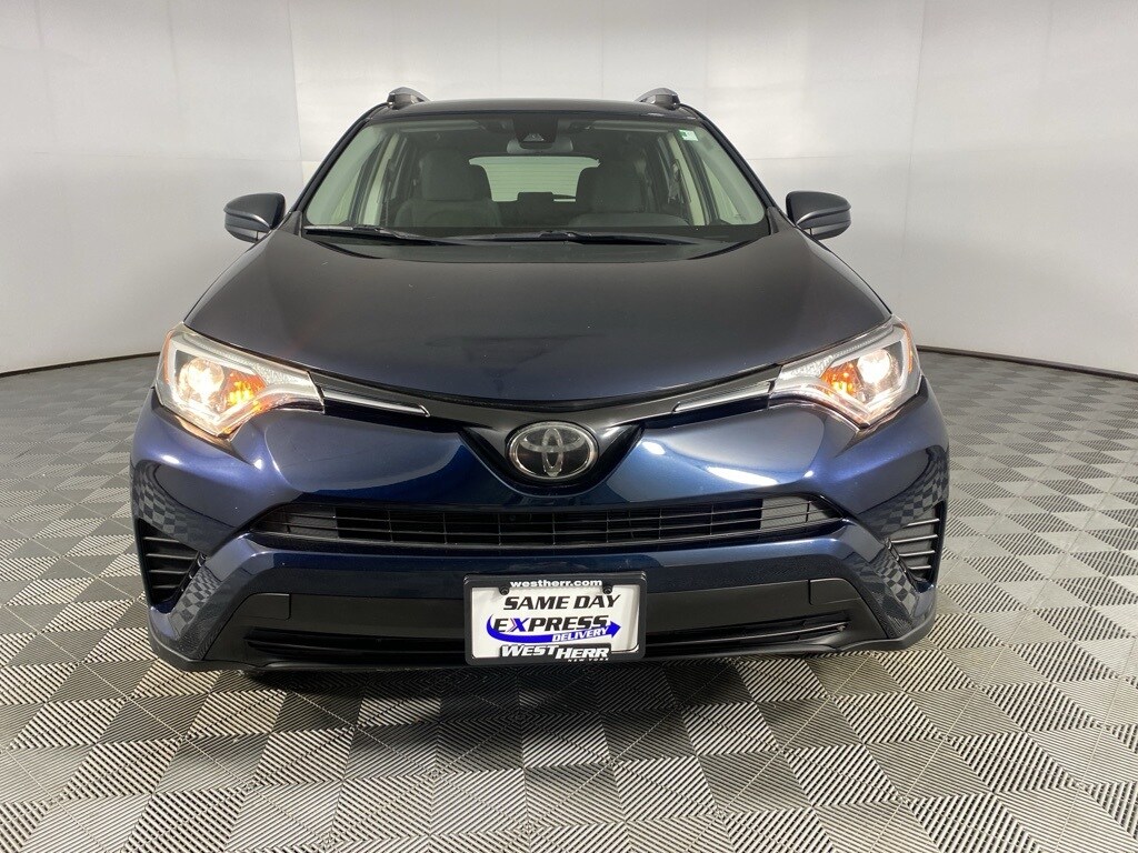 2018 Toyota RAV4 LE Blue 4-Wheel Disc Brakes, 6 Speakers, Air Conditioning, Auto High-beam Headlights, Brake assist, Bumpers: body-color, CD player, Driver door bin, Dual front impact airbags, Dual front side impact airbags, Exterior Parking Camera Rear, Fabric Seat Trim, Four wheel independent suspension, Front Bucket Seats, Front Center Armrest, Illuminated entry, Knee airbag, Occupant sensing airbag, Outside temperature display, Overhead airbag, Panic alarm, Passenger vanity mirror, Power door mirrors, Power windows, Radio: Entune AM/FM/CD/MP3/WMA Playback w/6 Speakers, Remote keyless entry, Speed control, Split folding rear seat, Steering wheel mounted audio controls, Tachometer, Telescoping steering wheel, Tilt steering wheel, Traction control, Trip computer. 22/28 City/Highway MPG