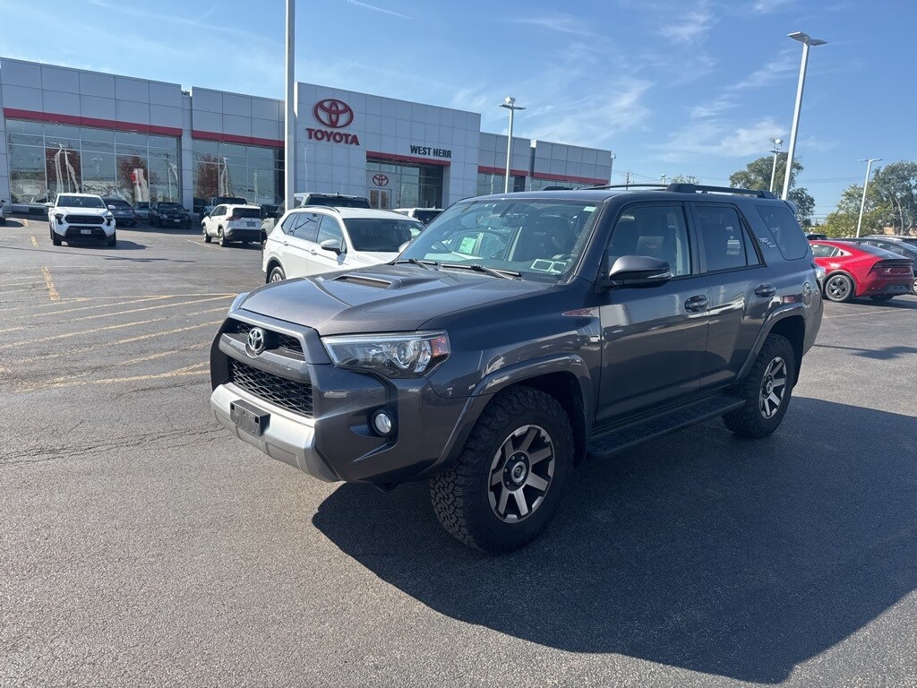 2019 Toyota 4Runner TRD Off-Road Premium Gray CARFAX One-Owner. 4-Wheel Disc Brakes, 8 Speakers, Air Conditioning, Auto-dimming Rear-View mirror, Body Color Heated Mirrors, Brake assist, Bumpers: body-color, CD player, Driver vanity mirror, Dual front impact airbags, Dual front side impact airbags, Front Bucket Seats, Front Center Armrest, Garage Door Opener, Heated door mirrors, Heated Front Bucket Seats, Heated front seats, Illuminated entry, Knee airbag, Occupant sensing airbag, Overhead airbag, Overhead console, Power passenger seat, Power windows, Remote keyless entry, Roof rack: rails only, Softex Synthetic Leather Seat Trim, Split folding rear seat, Spoiler, Tachometer, Telescoping steering wheel, Tilt steering wheel, Traction control, Trip computer.