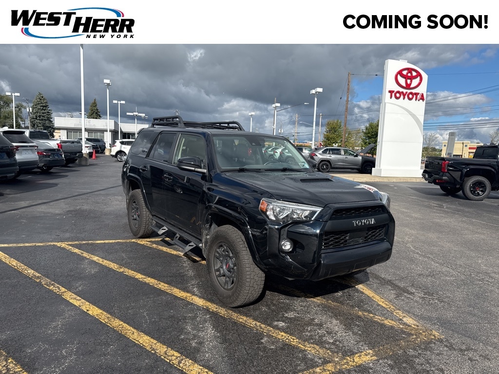 2020 Toyota 4Runner TRD Pro Black Metallic CARFAX One-Owner. 4-Wheel Disc Brakes, Air Conditioning, AM/FM radio: SiriusXM, Auto-dimming Rear-View mirror, Brake assist, Bumpers: body-color, Driver door bin, Dual front impact airbags, Dual front side impact airbags, Front anti-roll bar, Front Bucket Seats, Front Center Armrest, Garage Door Opener, Garage door transmitter: HomeLink, Heated Front Bucket Seats, Heated front seats, Knee airbag, Occupant sensing airbag, Outside temperature display, Overhead airbag, Passenger vanity mirror, Power door mirrors, Power driver seat, Power moonroof, Power passenger seat, Power windows, Right & Left Individual Air Conditioner, Roof rack, Softex Synthetic Leather Seat Trim, Speed-sensing steering, Split folding rear seat, Steering wheel mounted audio controls, Tachometer, Telescoping steering wheel, Tilt steering wheel, TRD Pro Shift Knob, TRD Suspension Kit, Trip computer, Turn signal indicator mirrors.