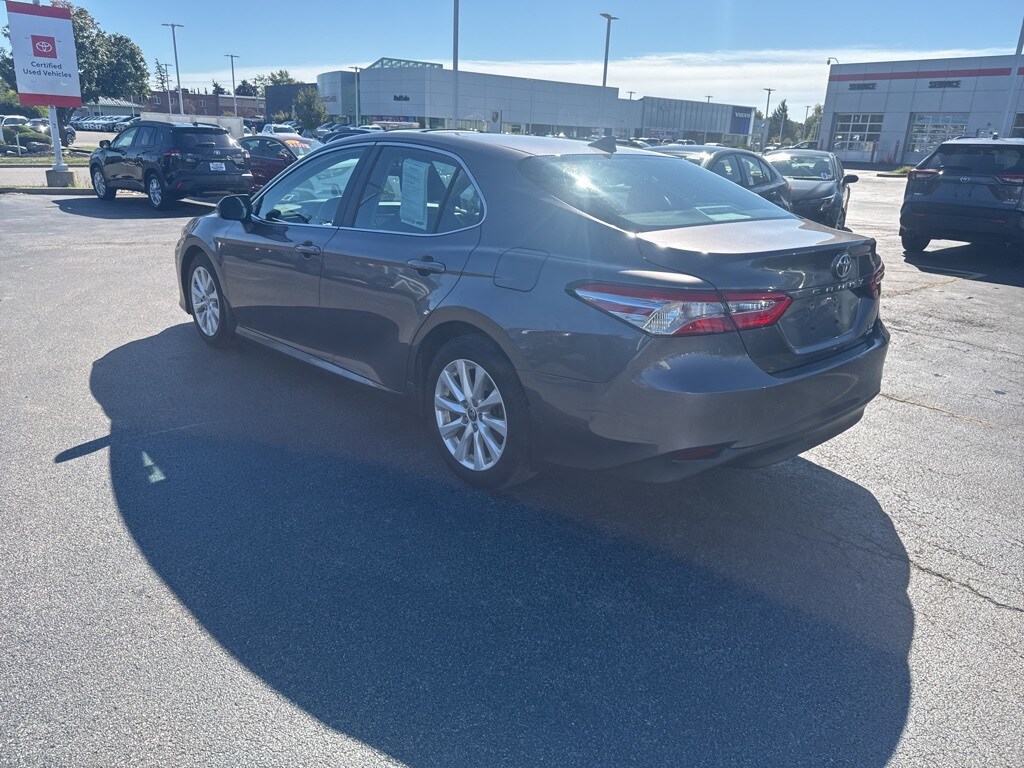 2020 Toyota Camry LE Gray CARFAX One-Owner. 4-Wheel Disc Brakes, 6 Speakers, Air Conditioning, AM/FM radio: SiriusXM, Auto High-beam Headlights, Bumpers: body-color, Driver vanity mirror, Dual front impact airbags, Dual front side impact airbags, Electronic Stability Control, Exterior Parking Camera Rear, Fabric Seat Trim, Four wheel independent suspension, Front Bucket Seats, Front Center Armrest, Fully automatic headlights, Knee airbag, Occupant sensing airbag, Overhead airbag, Overhead console, Power door mirrors, Power driver seat, Power windows, Radio: AM/FM Audio System, Rear reading lights, Rear side impact airbag, Rear window defroster, Remote keyless entry, Security system, Speed control, Split folding rear seat, Tachometer, Telescoping steering wheel, Tilt steering wheel, Traction control, Trip computer. 25/34 City/Highway MPG