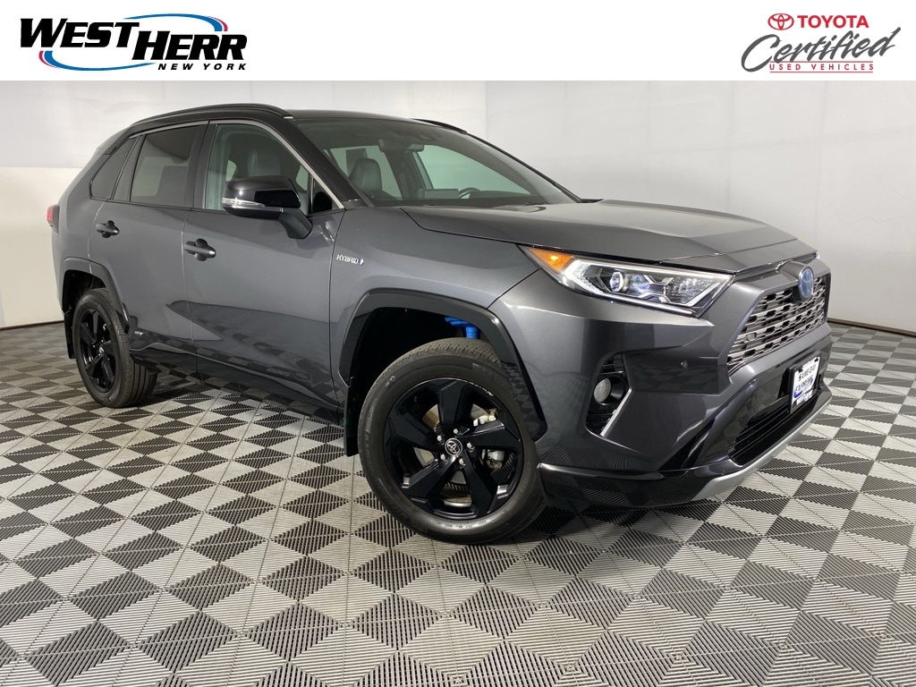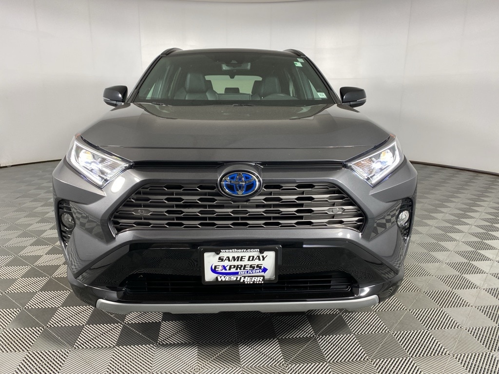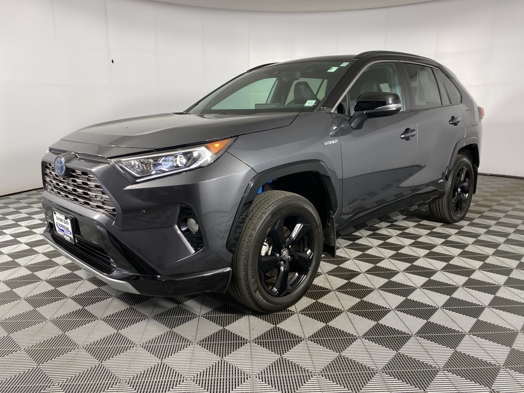 2021 Toyota RAV4 Hybrid XSE Gray CARFAX One-Owner. 6 Speakers, ABS brakes, Air Conditioning, Apple CarPlay/Android Auto, Auto High-beam Headlights, Automatic temperature control, Brake assist, Bumpers: body-color, Driver door bin, Dual front impact airbags, Dual front side impact airbags, Four wheel independent suspension, Front anti-roll bar, Front Bucket Seats, Front Center Armrest, Front Fog & Driving Lamp, Front Seat Heating, Garage door transmitter: HomeLink, Heated door mirrors, Heated Front Seats, Heated front seats, Illuminated entry, Knee airbag, Leather Shift Knob, Occupant sensing airbag, Overhead airbag, Overhead console, Power door mirrors, Power driver seat, Power windows, Radio data system, Radio: Audio Plus, Rear window defroster, Remote keyless entry, Security system, SofTex Seat Trim (EC), Speed-sensing steering, Split folding rear seat, Spoiler, Steering wheel mounted audio controls, Telescoping steering wheel, Tilt steering wheel, Trip computer. 41/38 City/Highway MPG
