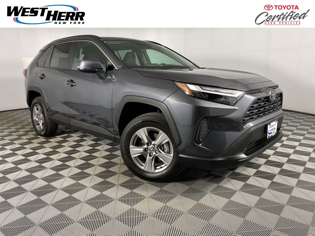 Certified. 2022 Toyota RAV4 XLE Magnetic Gray Metallic Clean CARFAX. CARFAX One-Owner. 4-Wheel Disc Brakes, 6 Speakers, Air Conditioning, AM/FM Stereo, Apple CarPlay/Android Auto, Bumpers: body-color, Delay-off headlights, Driver door bin, Dual front impact airbags, Dual front side impact airbags, Electronic Stability Control, Exterior Parking Camera Rear, Fabric Seat Trim, Four wheel independent suspension, Front Bucket Seats, Front Center Armrest, Front dual zone A/C, Front reading lights, Heated door mirrors, Knee airbag, Occupant sensing airbag, Outside temperature display, Overhead airbag, Panic alarm, Power door mirrors, Power driver seat, Power steering, Power windows, Rear window defroster, Speed control, Split folding rear seat, Spoiler, Steering wheel mounted audio controls, Tachometer, Telescoping steering wheel, Tilt steering wheel, Traction control, Trip computer. Odometer is 19740 miles below market average! 27/33 City/Highway MPG